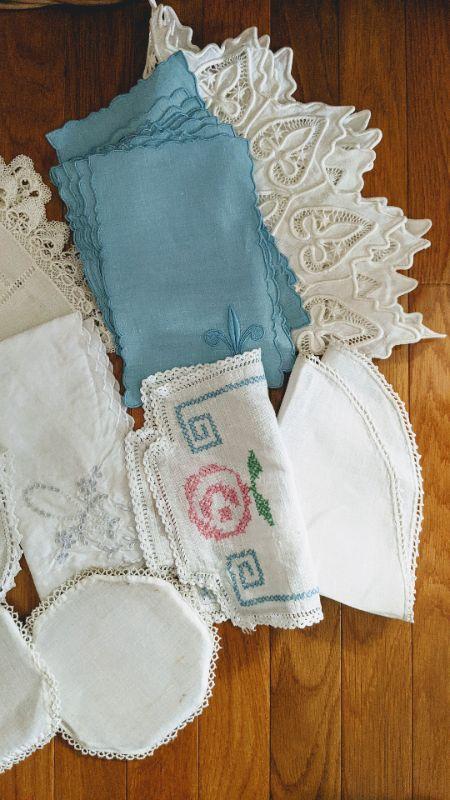 Lot 200 s Mixed 21 pc lot of antique linens lace doilies tatting crochet cross-stitch CRAFTS