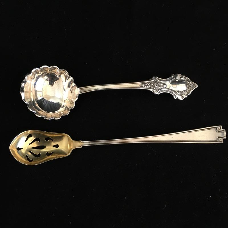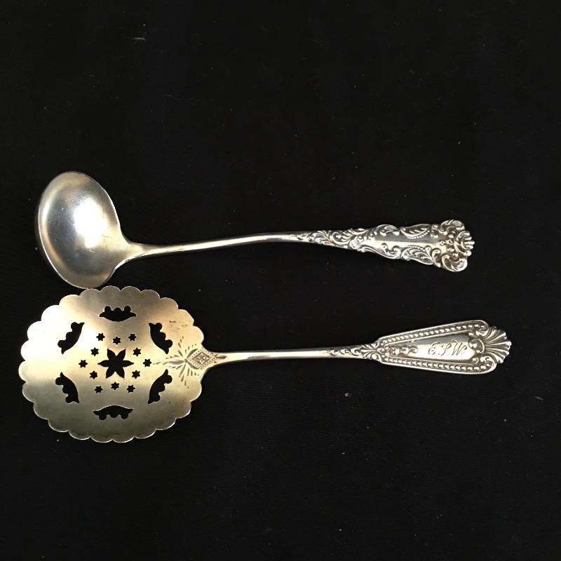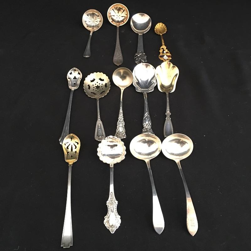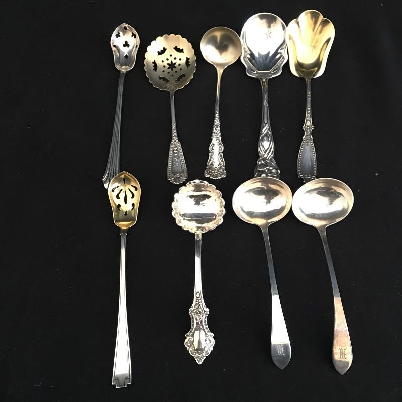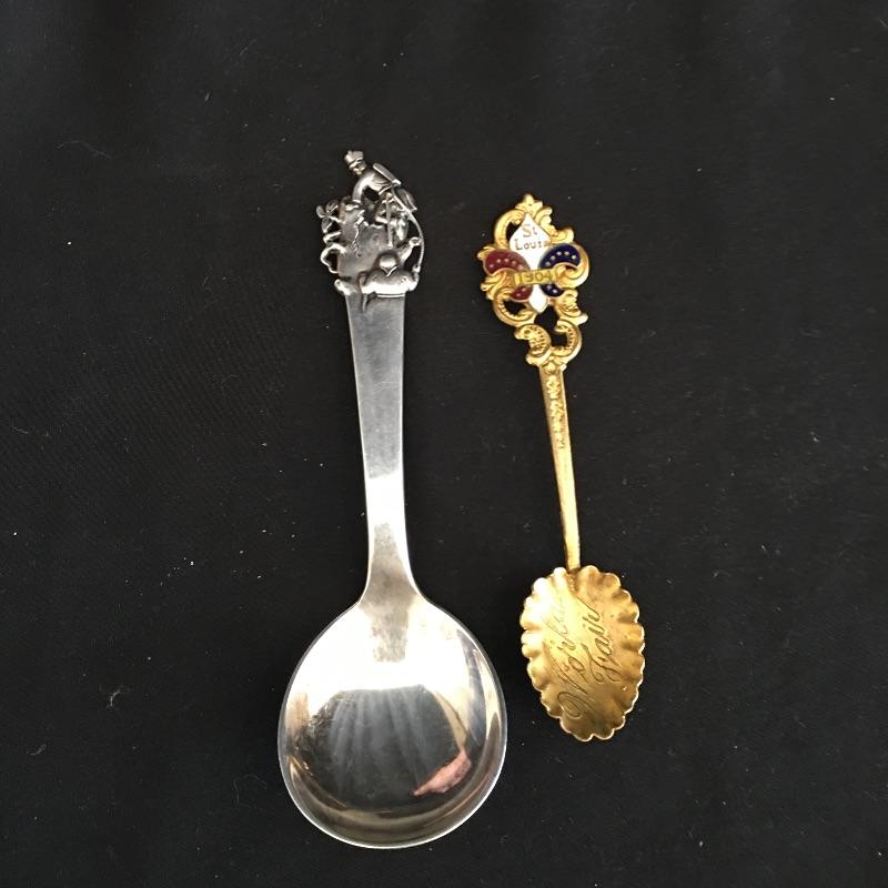 This lot includes a great collection of different styles of spoons that includes nine spoons marked sterling and four others for a total of 13. One collectible spoon says Worlds Fair St. Louis 1904.