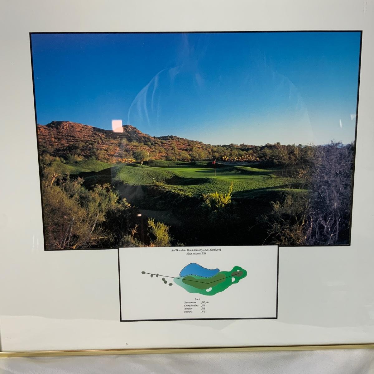 Two Golf Course Photos. Framed and ready to be displayed! Red Mountain and Cypress Hill courses featured. //::\\ Please see photos for details and condition. No attempt has been made to hide any imperfections. All items listed in this auction are warehouse items, and need to be cleaned. A majority of the items need restoration as well. All items are sold AS IS and WITHOUT GUARANTEE. If you are uncertain about an item, DO NOT BID. Due to the nature of this online auction in-person inspection is HIGHLY recommended. All Sales are FINAL. Pick Up Times are FIRM. Please confirm with your own schedule that you can pick up in the scheduled times listed in the Terms and Conditions. Any questions please message the auctioneer. DO NOT Contact The Harp Gallery.