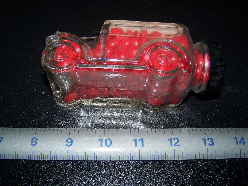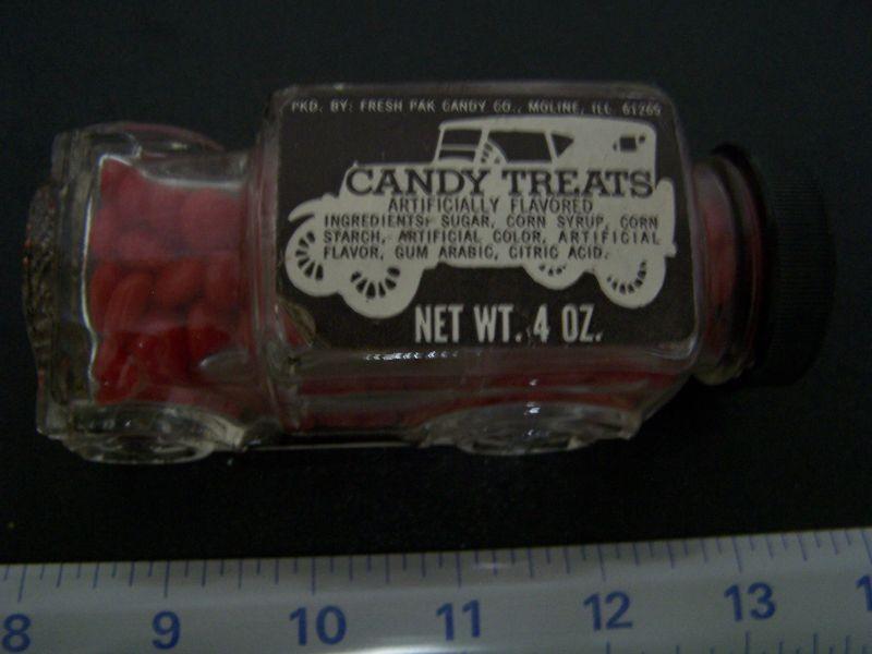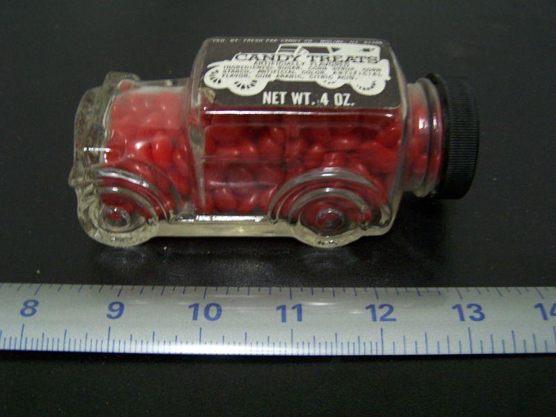 RED HOTS IN GLASS CAR "CANDY TREATS" VG CONDITION BUT I WOULDN'T EAT THEM!
