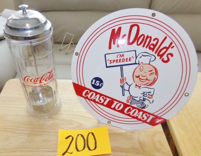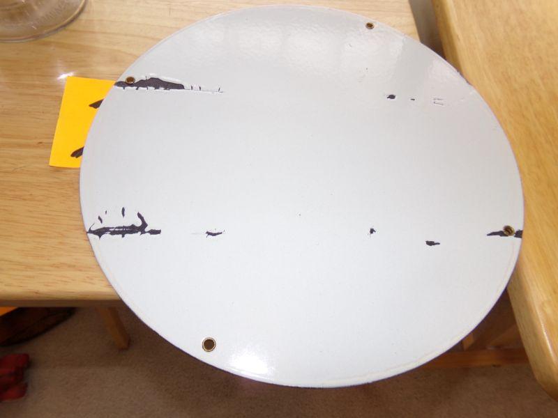 ENAMEL ON BOTH SIDES OF MCDONALDS SIGN, PAINT LOSS ON BACK SIDE, 12"