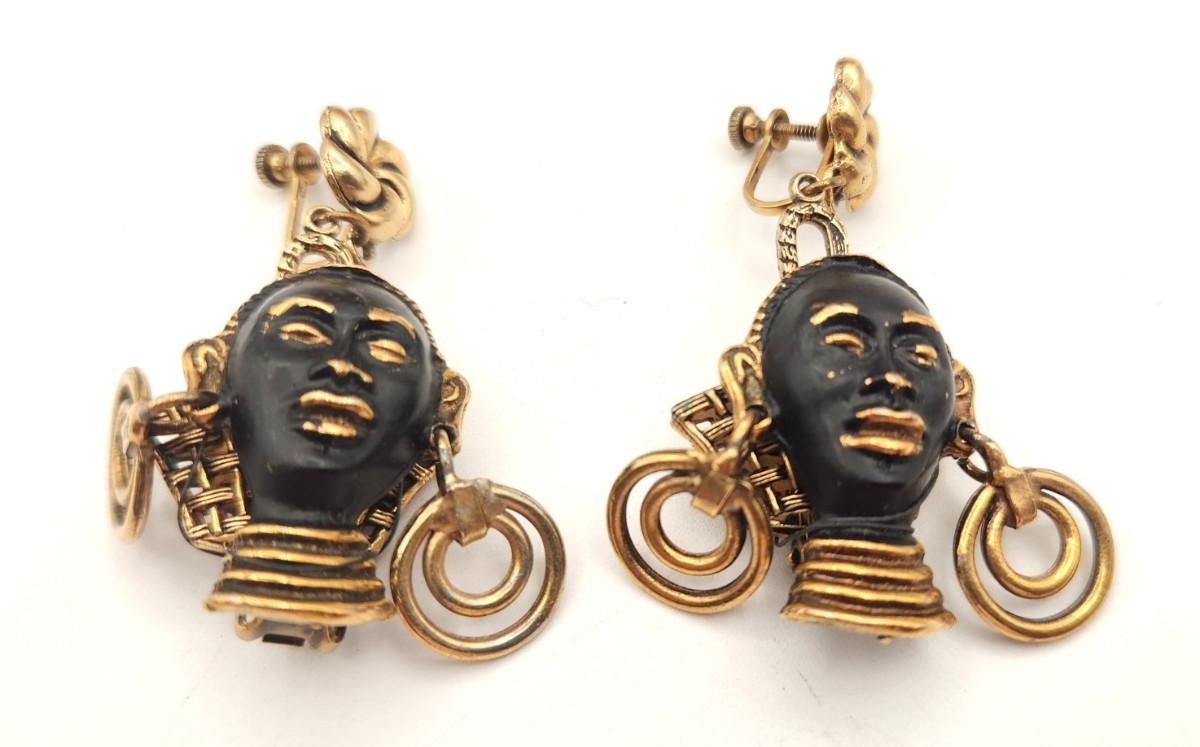Lot #200 Vintage Mid Century Screwback Nubian Head earrings - SCARCE