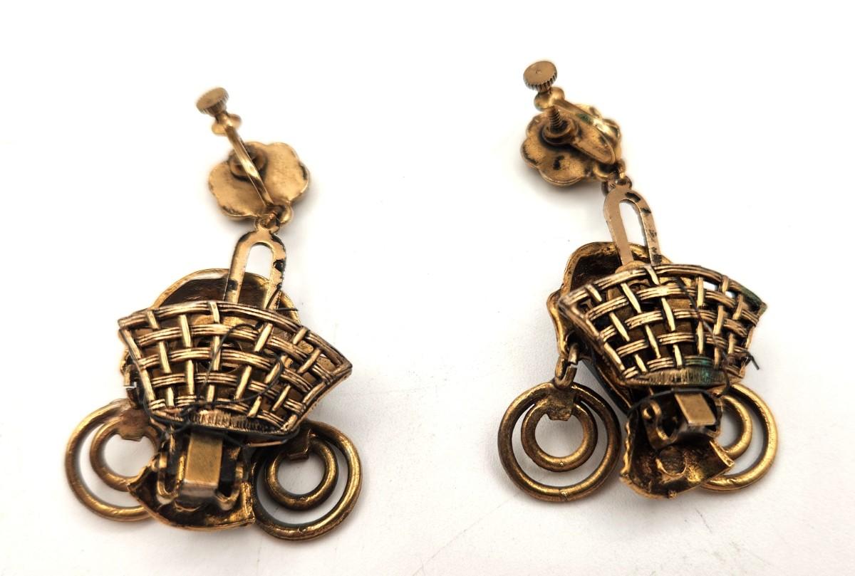 These earrings match the other pieces that were listed earlier in the sale - very scarce. Unmarked. Each is 2" long. I've only seen these pieces in books before - never in "the wild."
