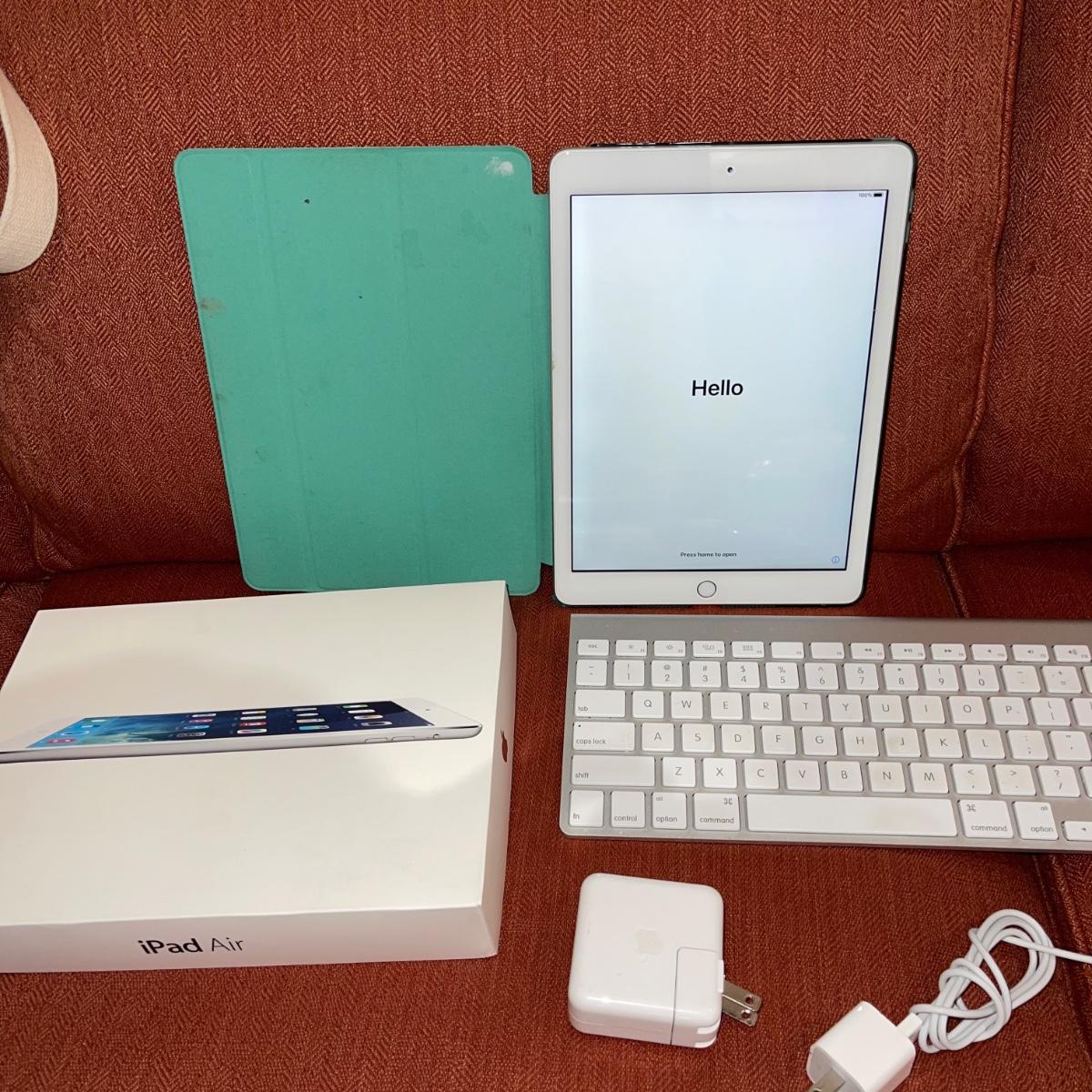 Apple iPad Model: A1893 6th Generation 9.7” Screen. Come with cover, wireless Bluetooth keyboard, small 5W adapter and large wattage IPad adapter with USB lightning cable. iPad has been reset/cleared to original manufacture settings. 32GB memory. Overall condition good, no screen cracks, etc“🦆“🦆.