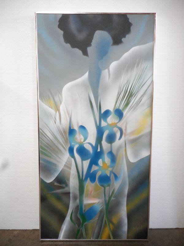 nice oblong print measures 48 1/4'' tall x 24 1/4'' wide. Modern oil on canvas.
