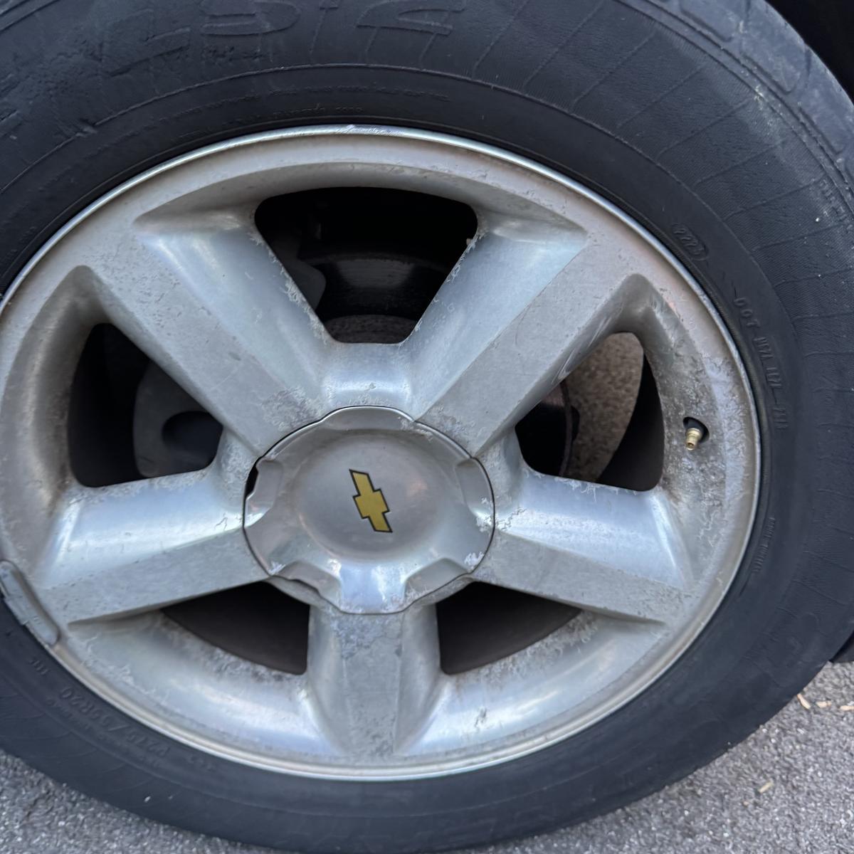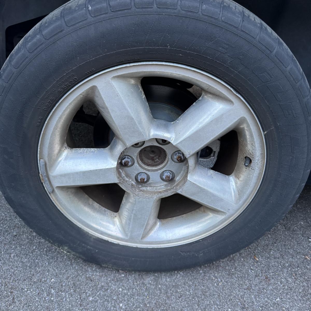 • All four tires need replacement due to dry rot; front two have slow leaks (inflated for photos only and test drive)