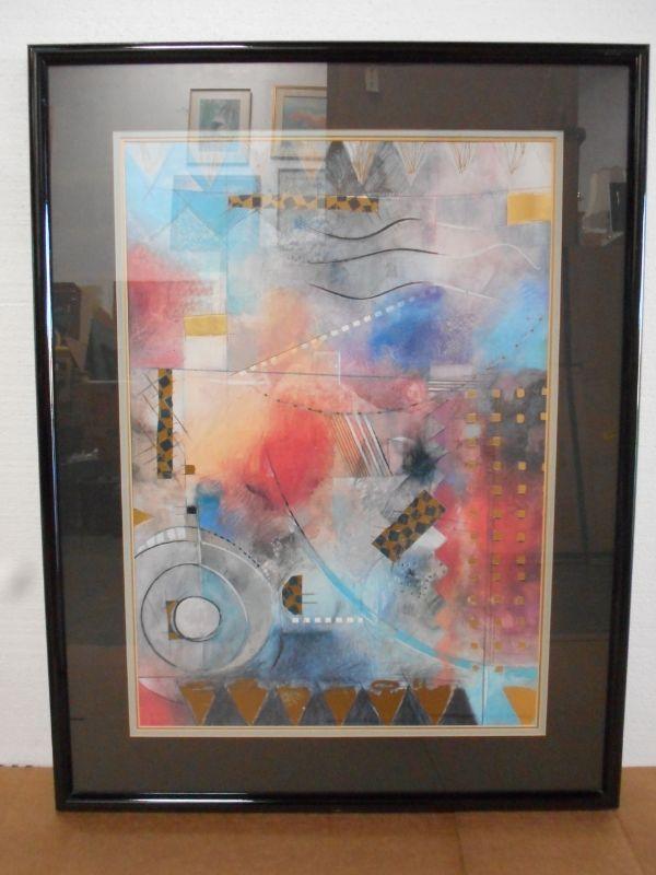 Lot 2008 - Mystery Artist Colorful Art Black Frame with Glass