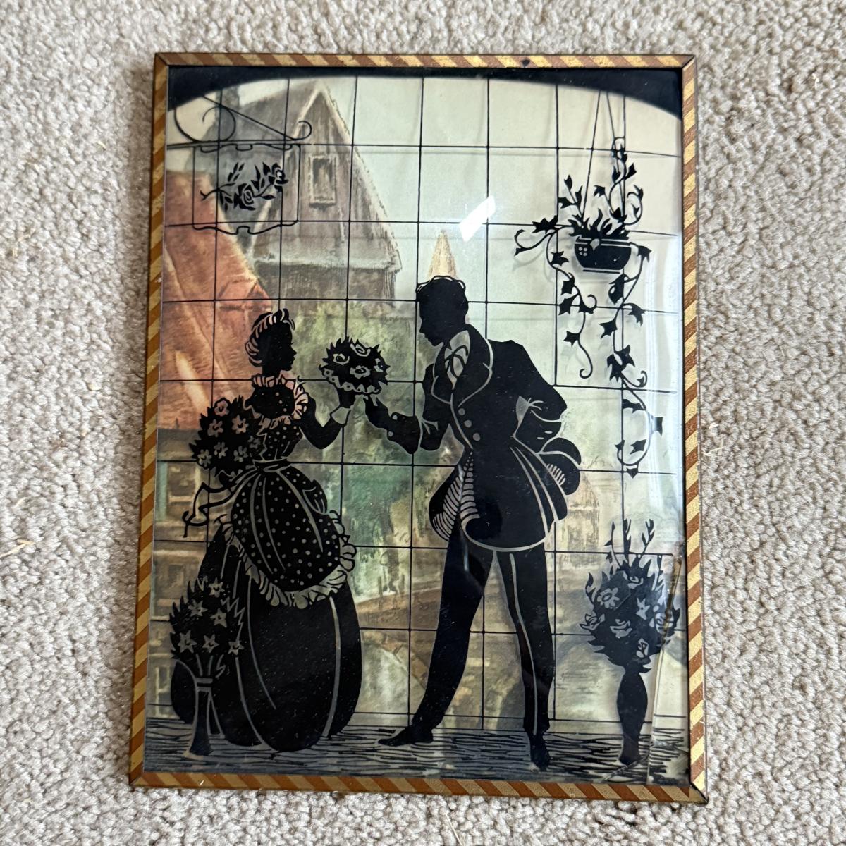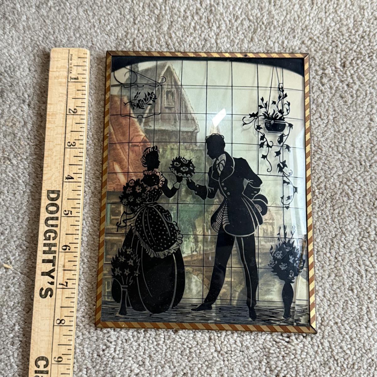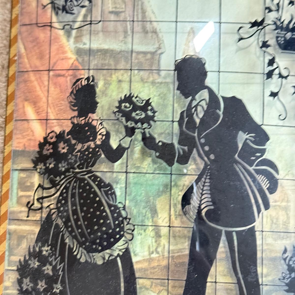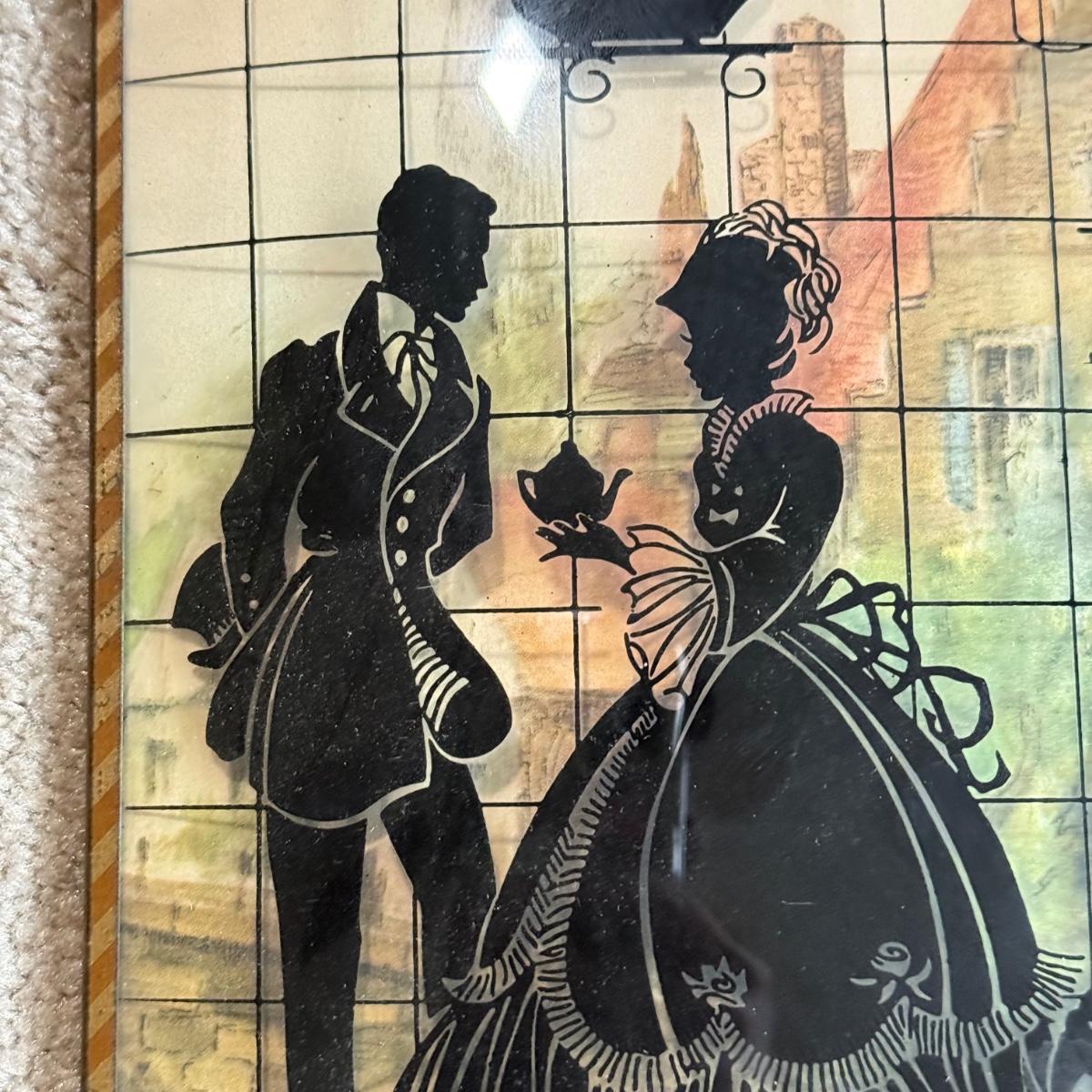 LOT 200K: Vintage Curved Glass Silhouette Couple Wall Art
