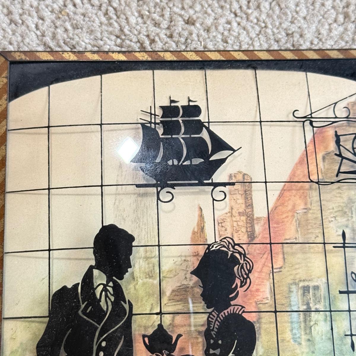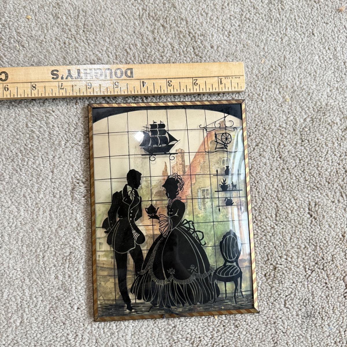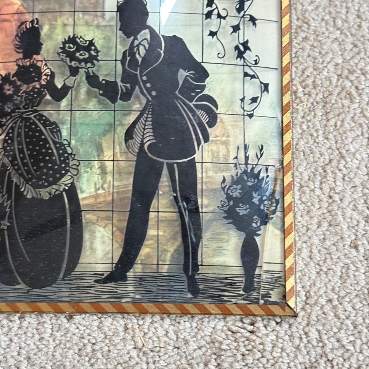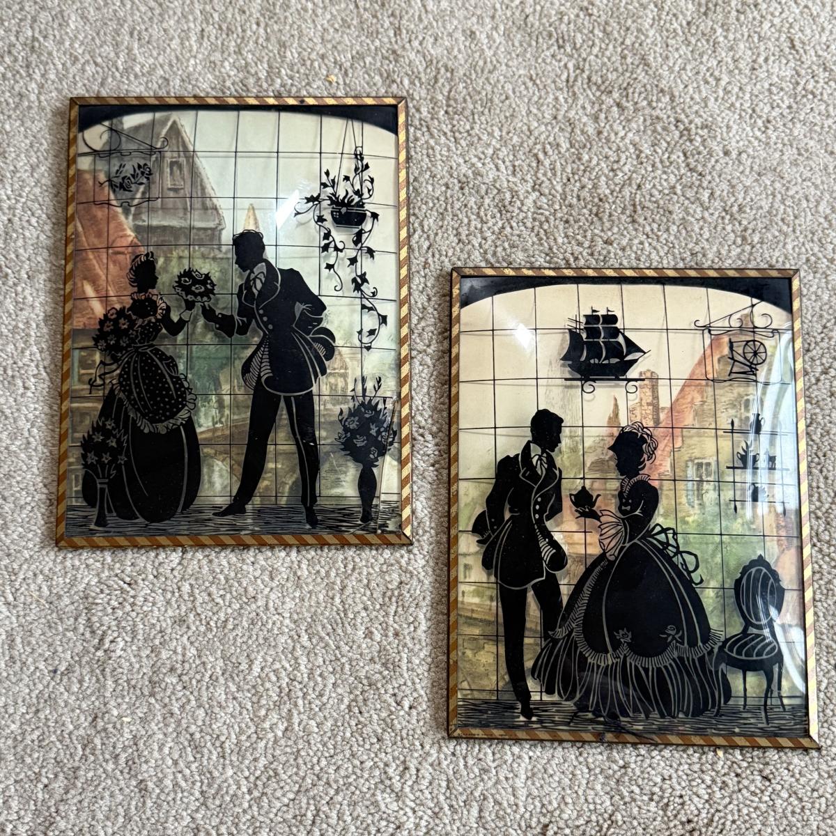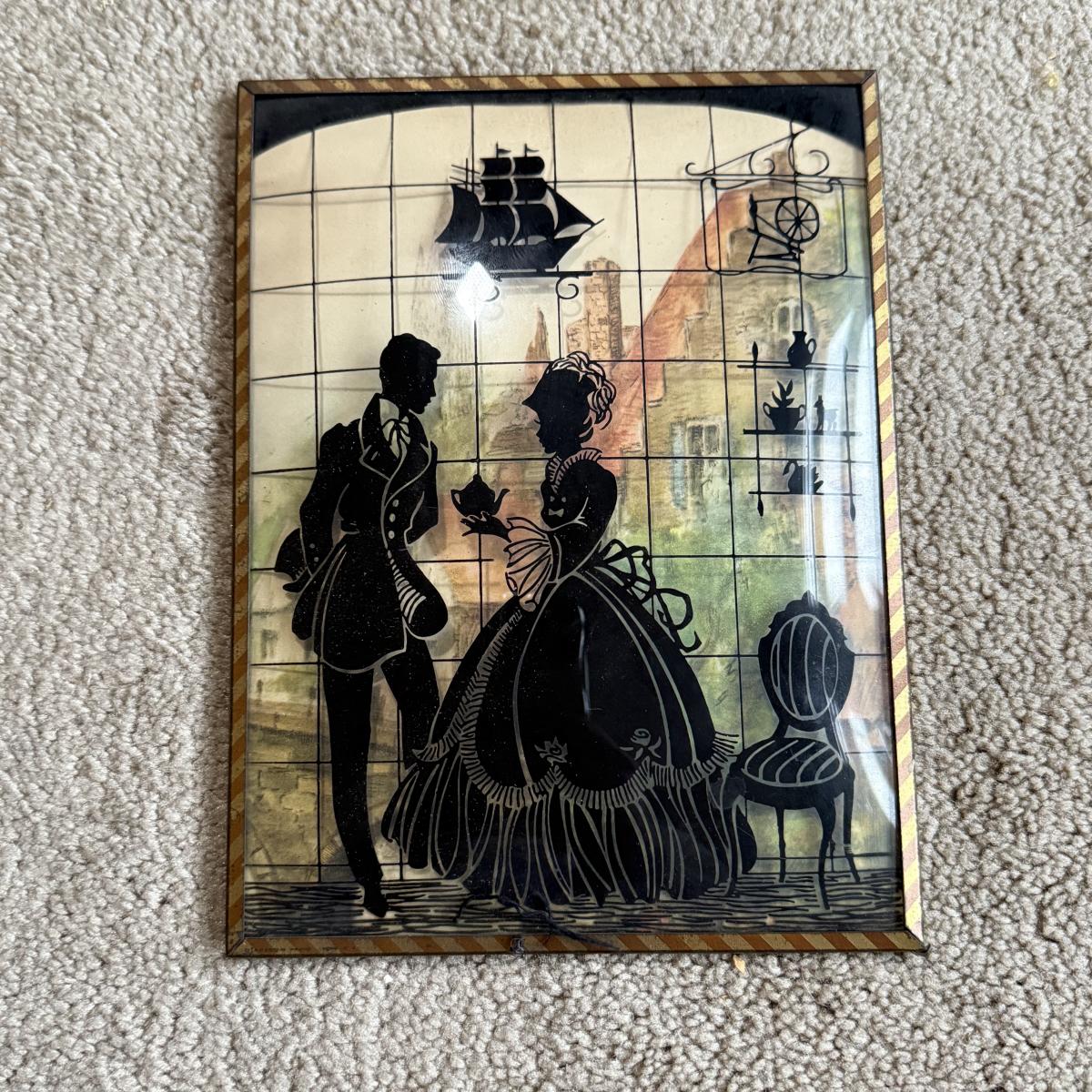 LOT 200K: Vintage Curved Glass Silhouette Couple Wall Art