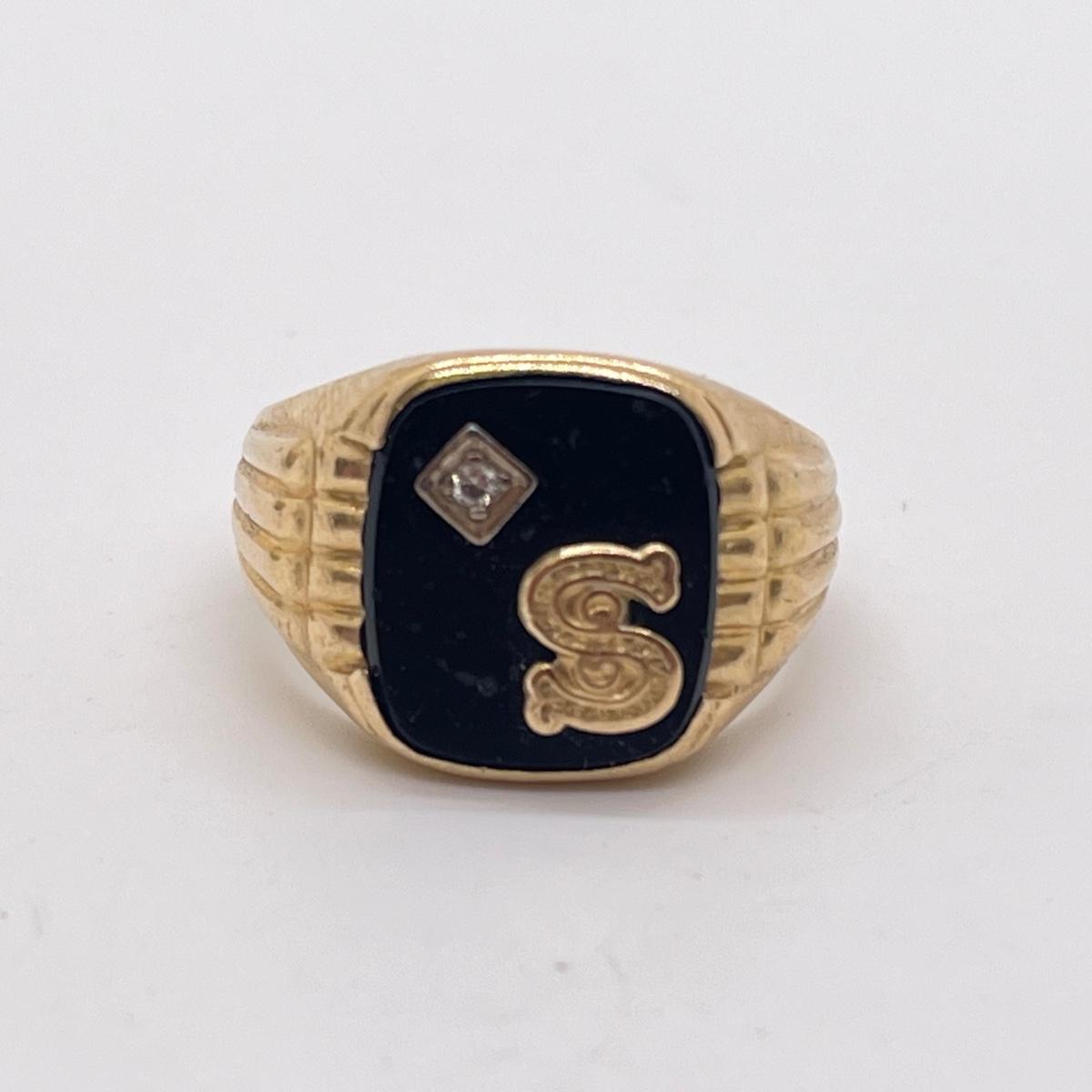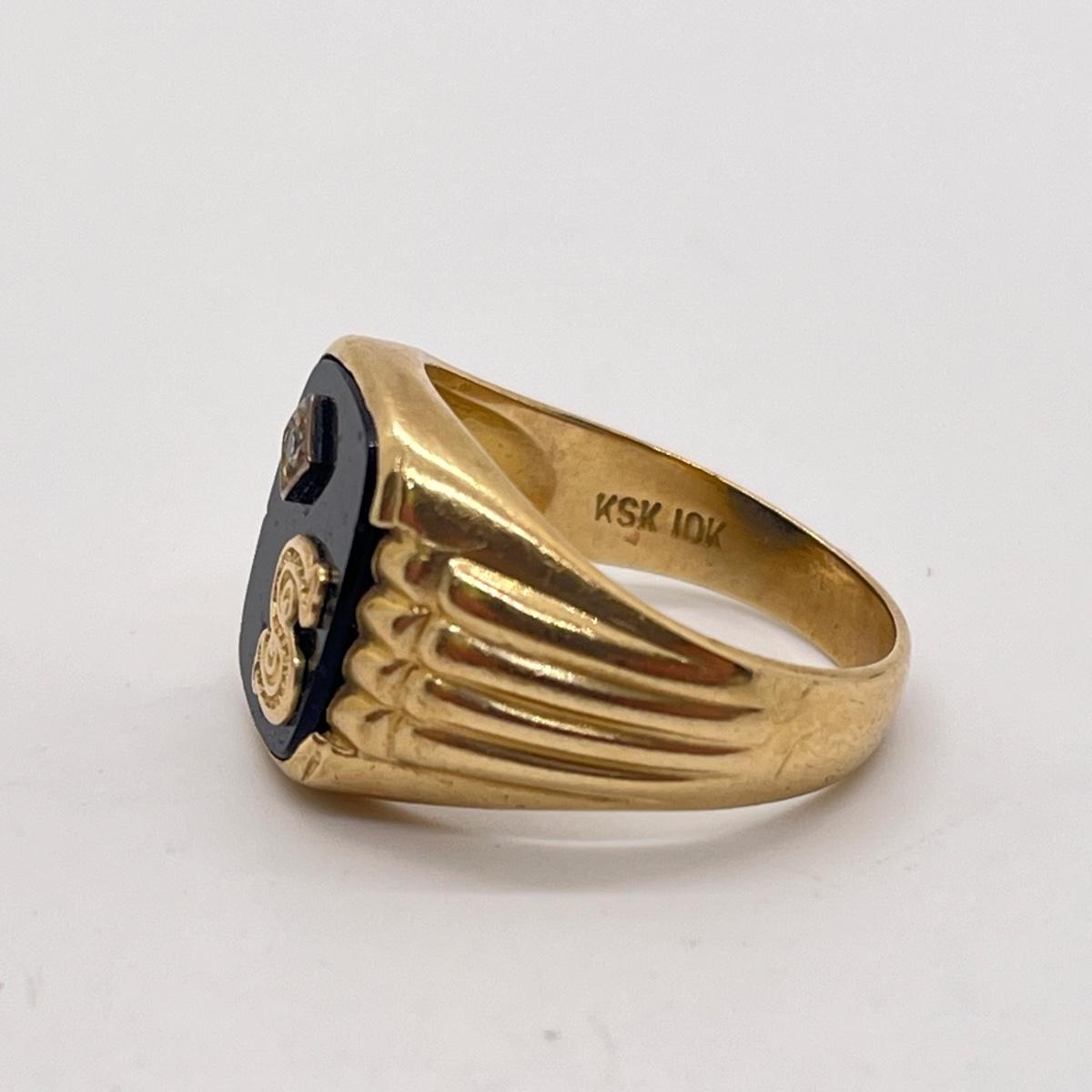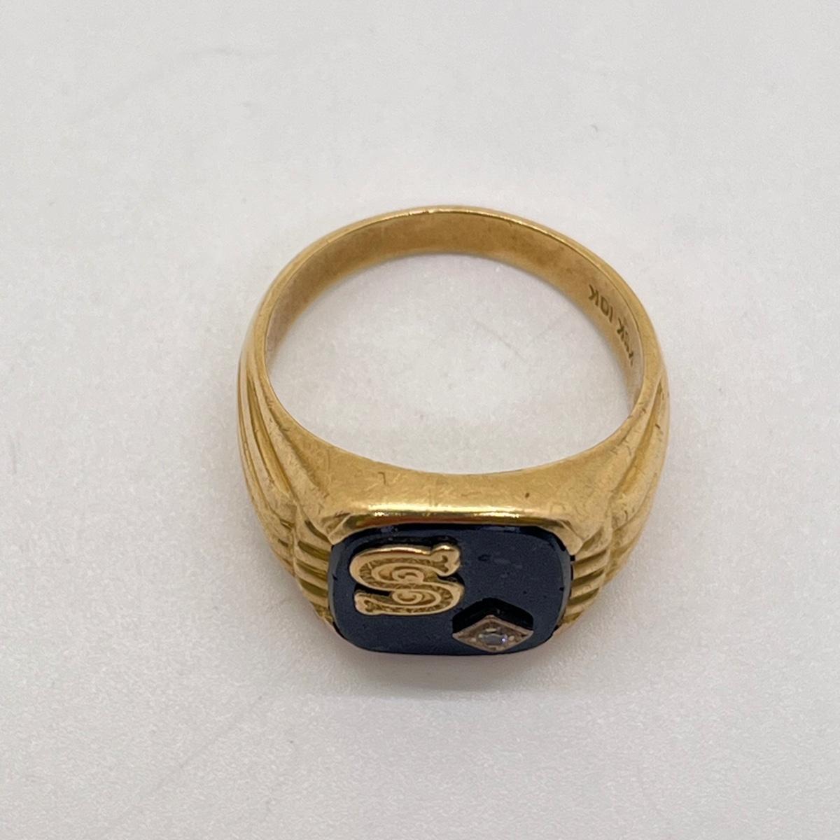LOT 201: 10K Gold Size 10 Ring with Diamond Chip - 7.0 grams total weight