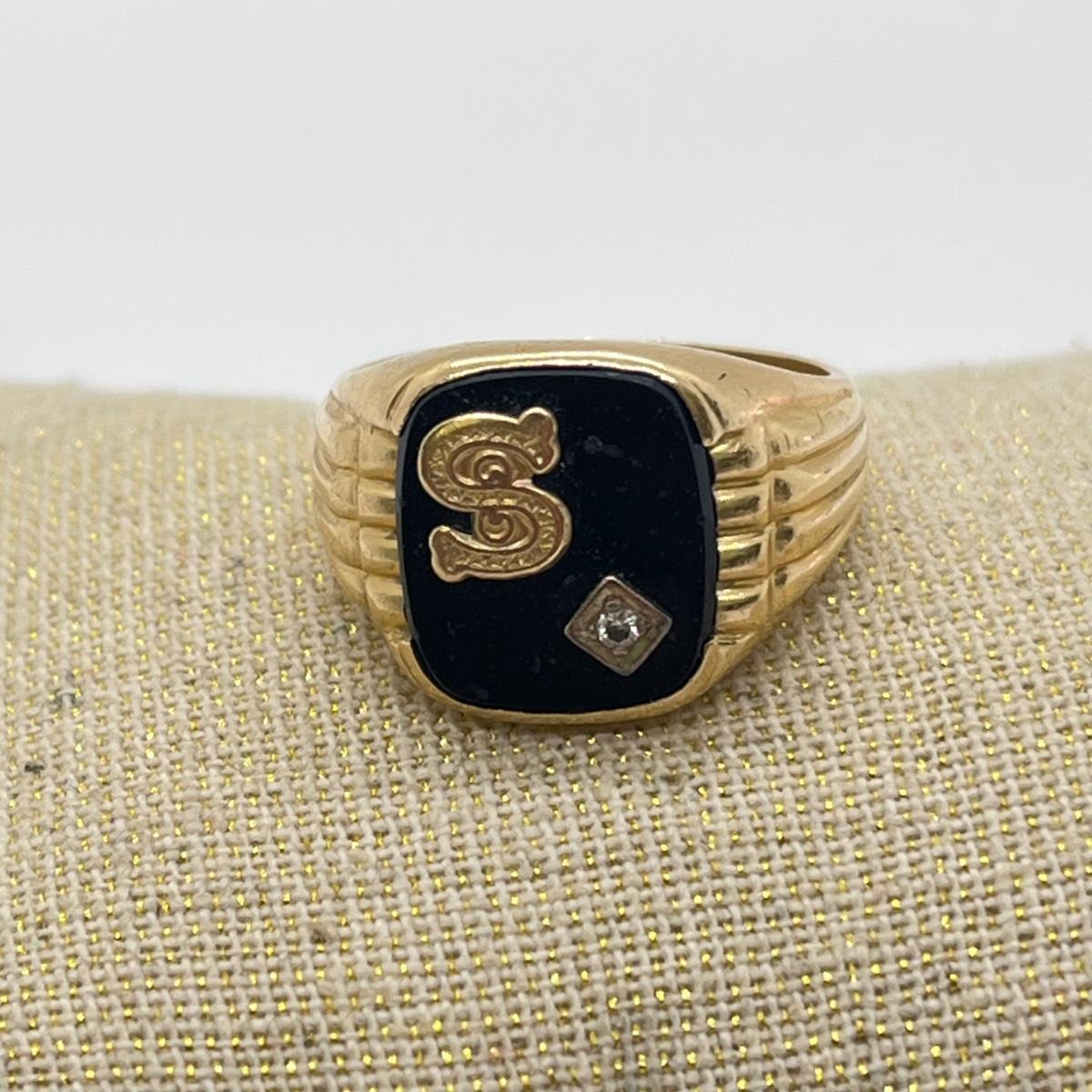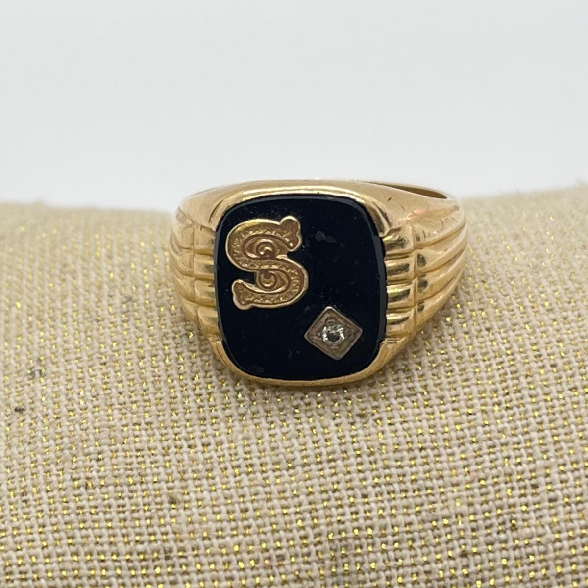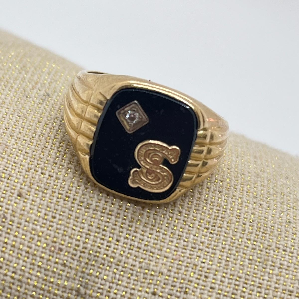 LOT 201: 10K Gold Size 10 Ring with Diamond Chip - 7.0 grams total weight