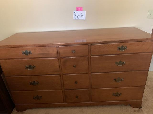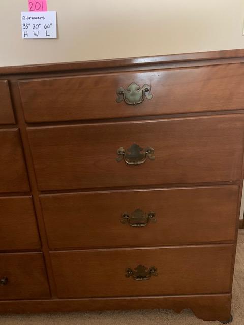 Dresser with 12 Drawers. Maple. 64 years old Ethan Allan. Must bring help to load this item.