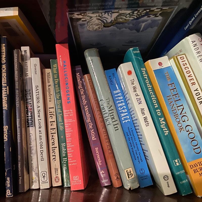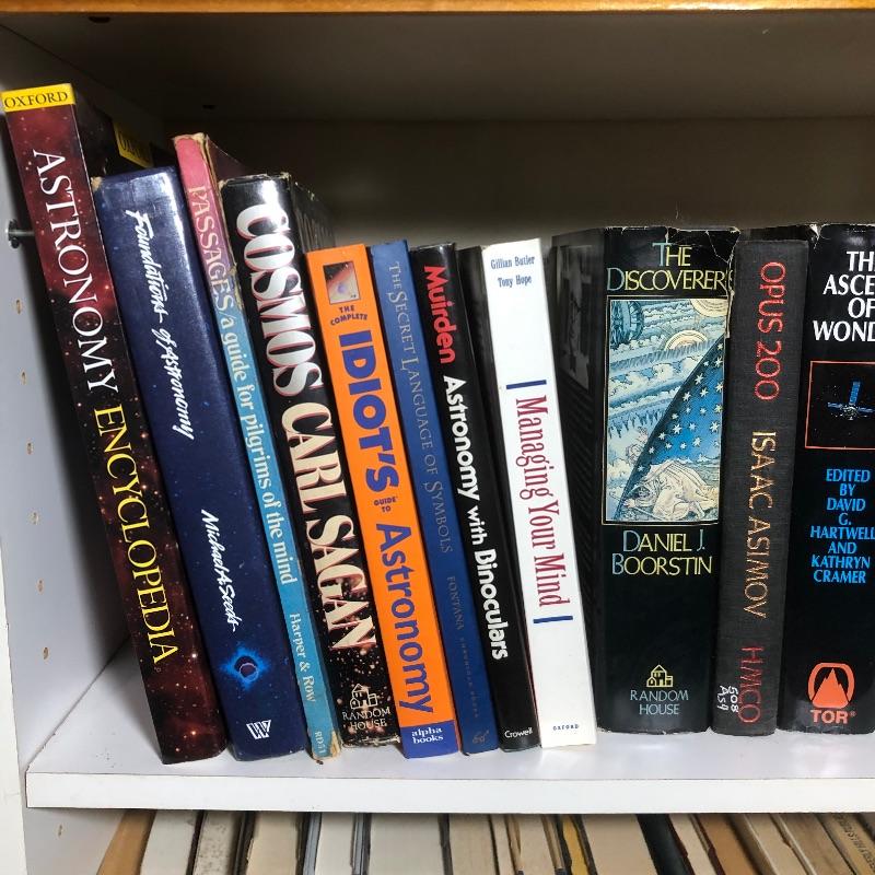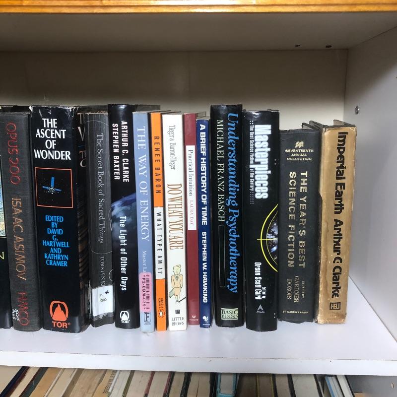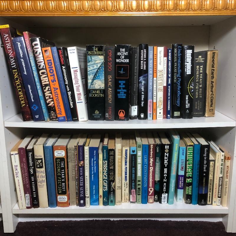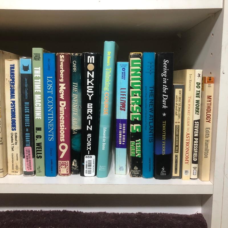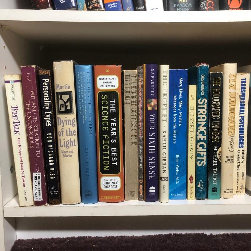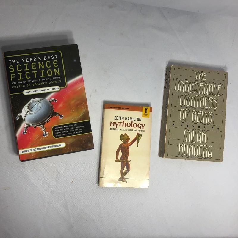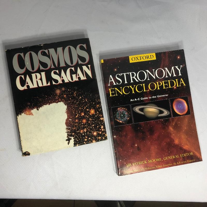 This lot includes a variety of books that will get you thinking. From self help to sci-fi to astronomy. Think about the universe and why you are here! There are classic books like Carl Sagan's "Cosmos" and Edith Hamilton's "Mythology." Includes a signed Dream book. This lot is a great addition to any book lover's collection! Books range in size from 7" high to 11.5" high. Shipping available.