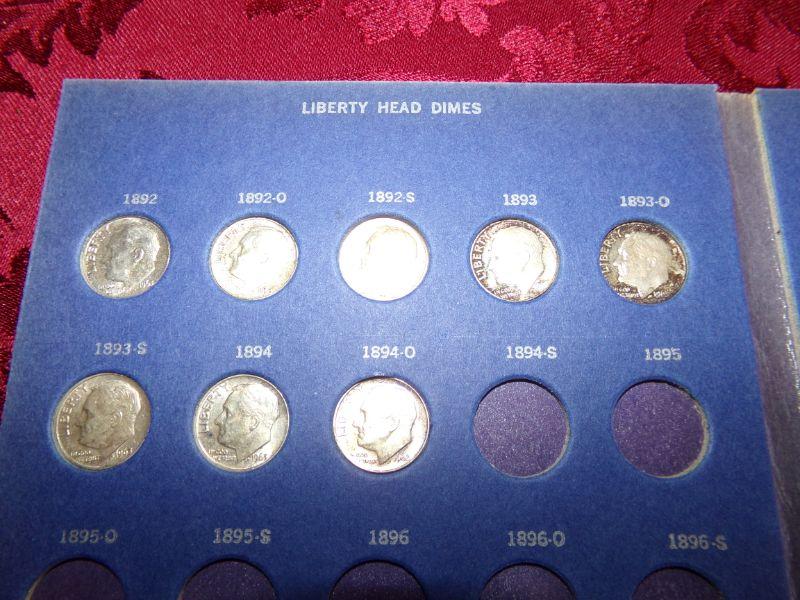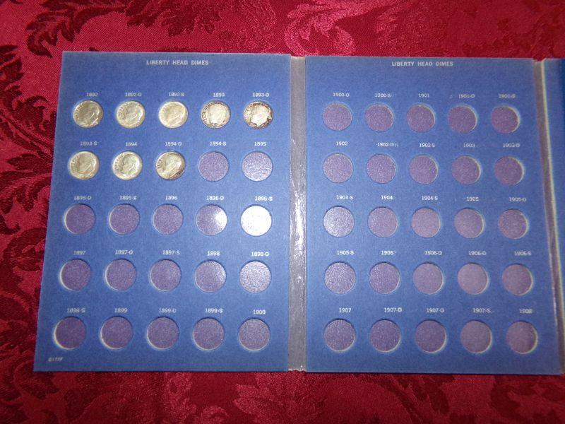 LIBERTY HEAD DIMES PORTFOLIO FOR YEARS 1892-1916. THERE ARE 8 LIBERTY HEAD DIMES IN CIRCULATED CONDITION. 1 FROM 1962 AND THERE ARE 7 FROM 1963. THESE DIMES DO NOT MATCH THE YEARS OF THE PORTFOLIO, BUT THEY ARE STILL COLLECTABLE.