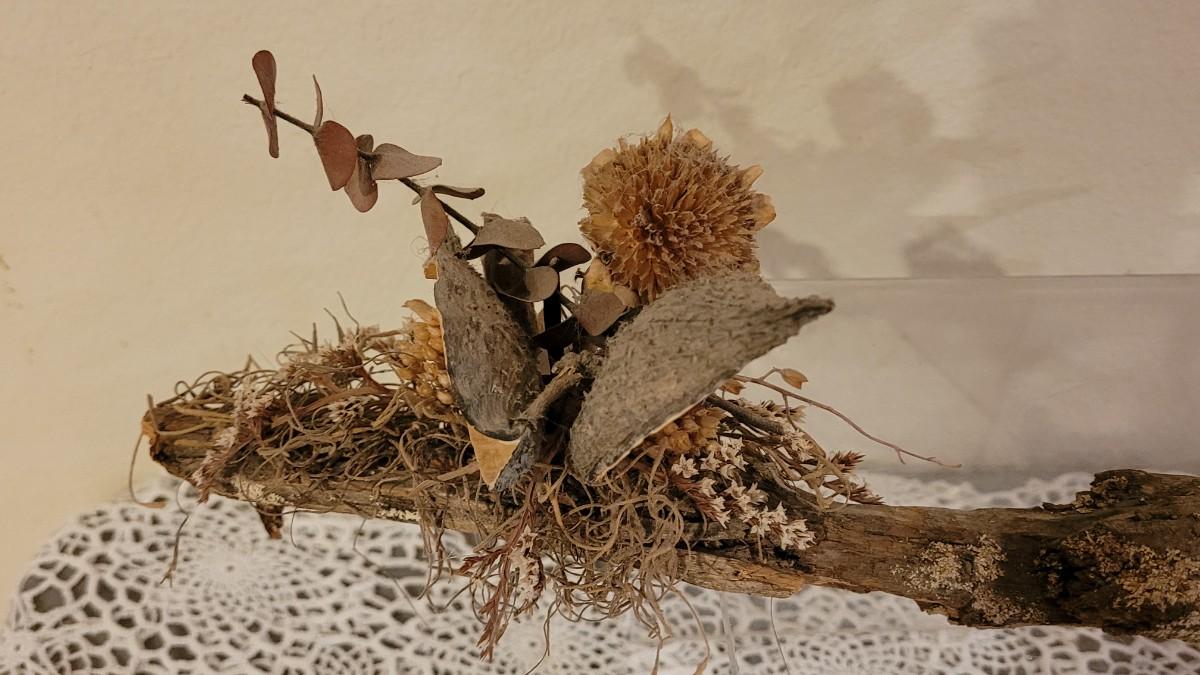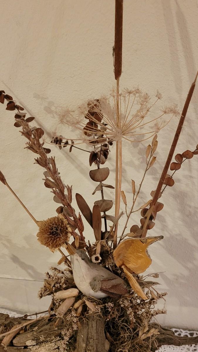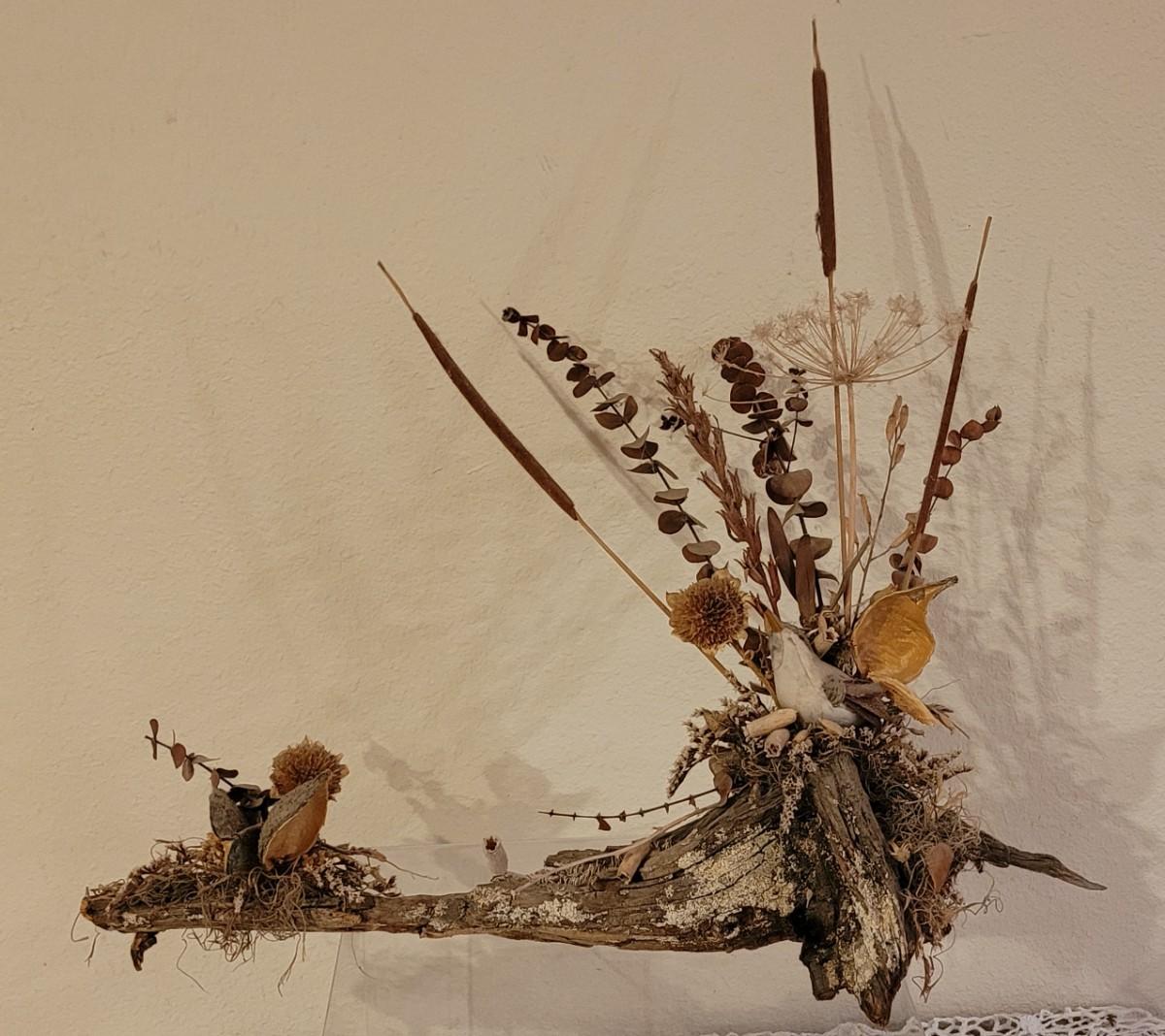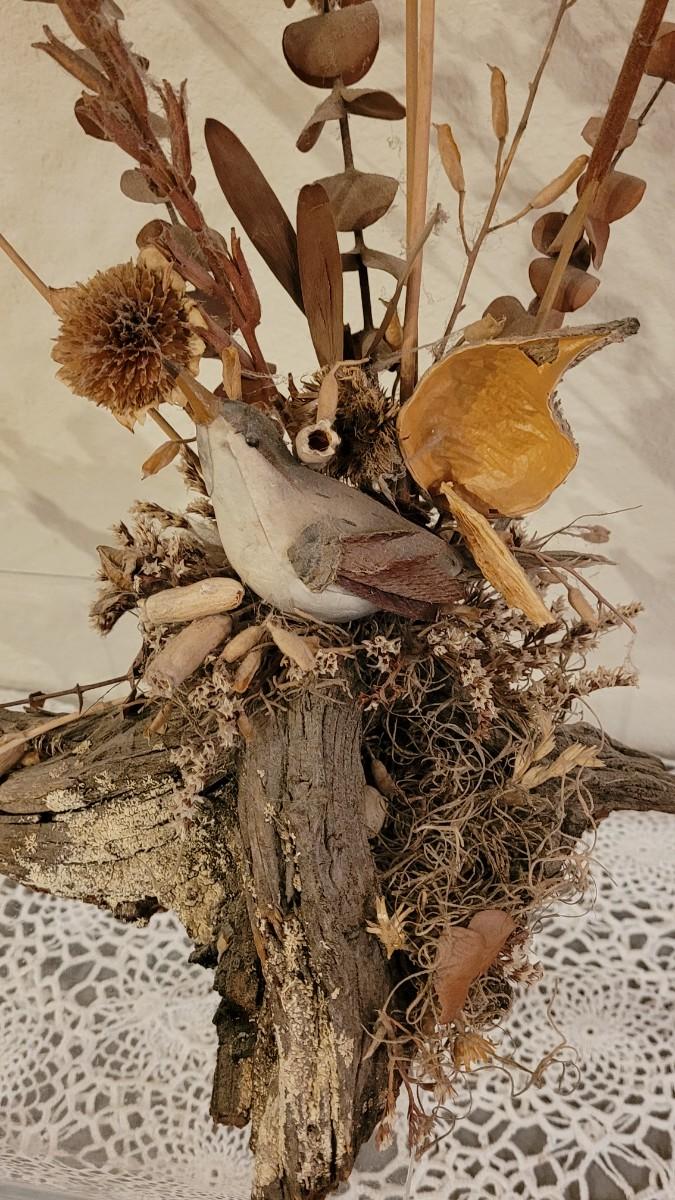 Lot 201: Vintage Wood with Dried Floral and Bird