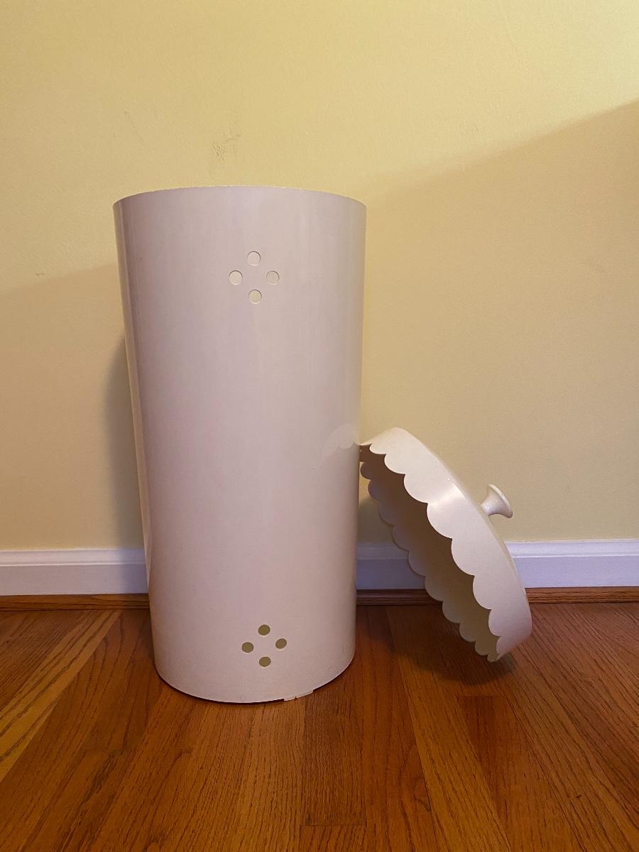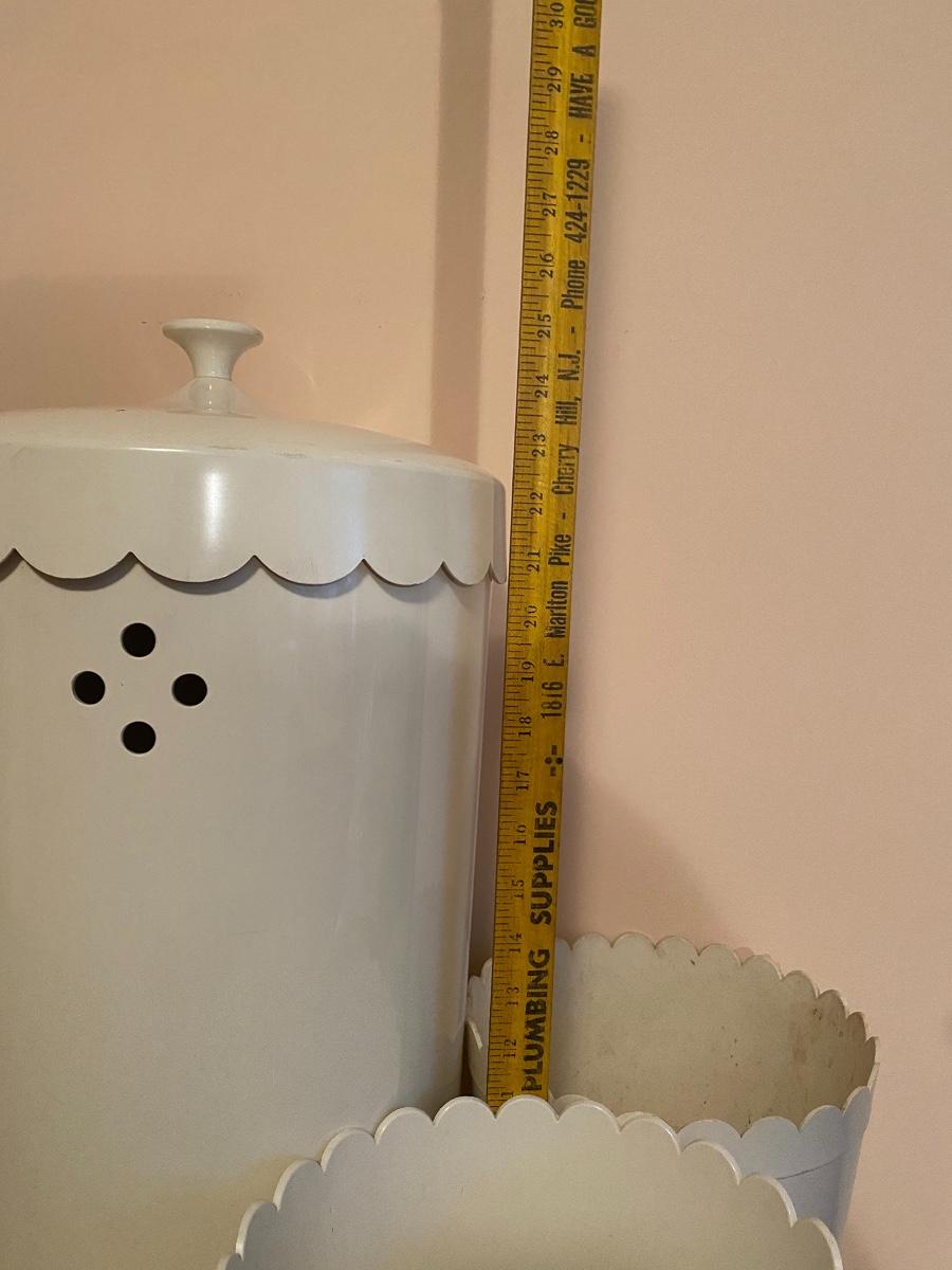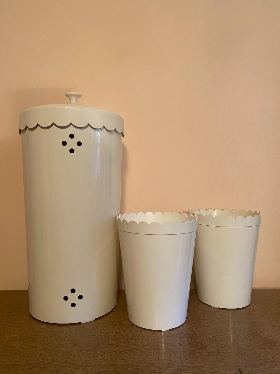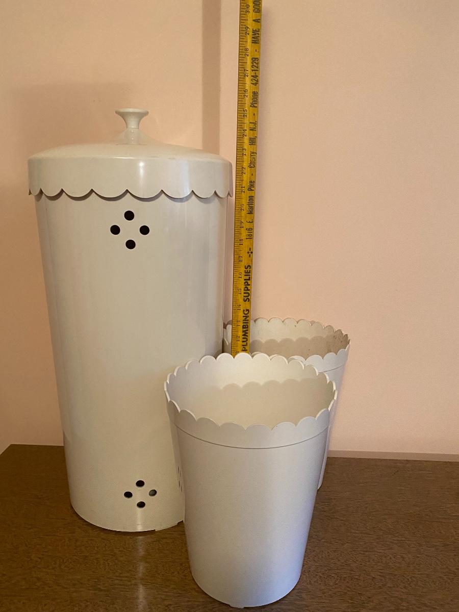 Vintage hamper with lid. Two small trash cans. Please see all pictures as they are the best representation of the items. The pictures show condition, measurements if taken, and what is included in the lot. Due to the large amount that we photograph and the time frame, we are not always able to take measurements. All items unless noted, are pre-owned and have been used. If you purchased furniture, you must bring help. We do not allow one person to carry large furniture out on their own. Bring help, tools and a truck for the safety of our client’s homes, and your personal safety. Company policy. Thank you.