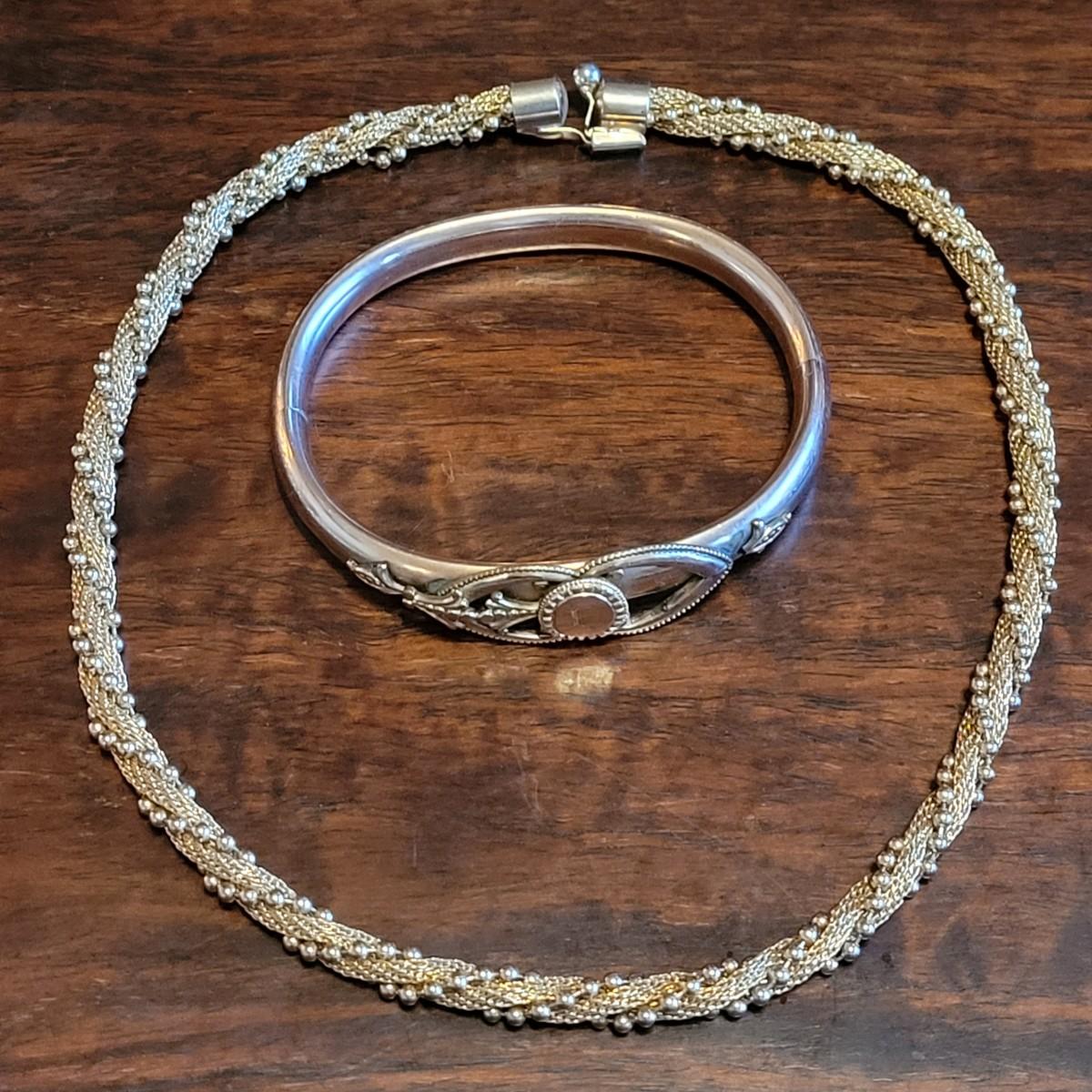 Lot 201: Vintage Hinged Cuff Bracelet and Necklace