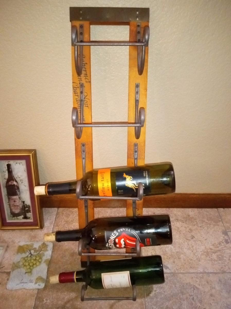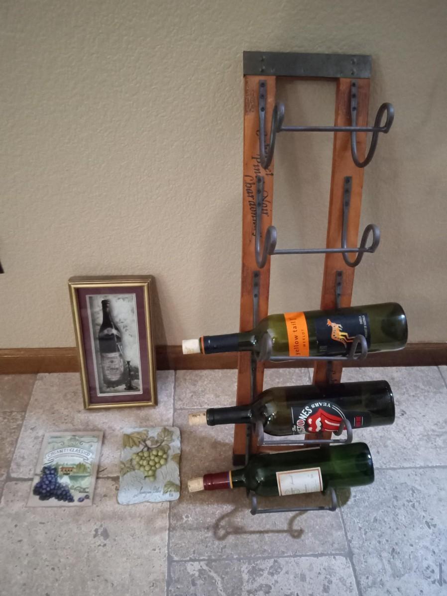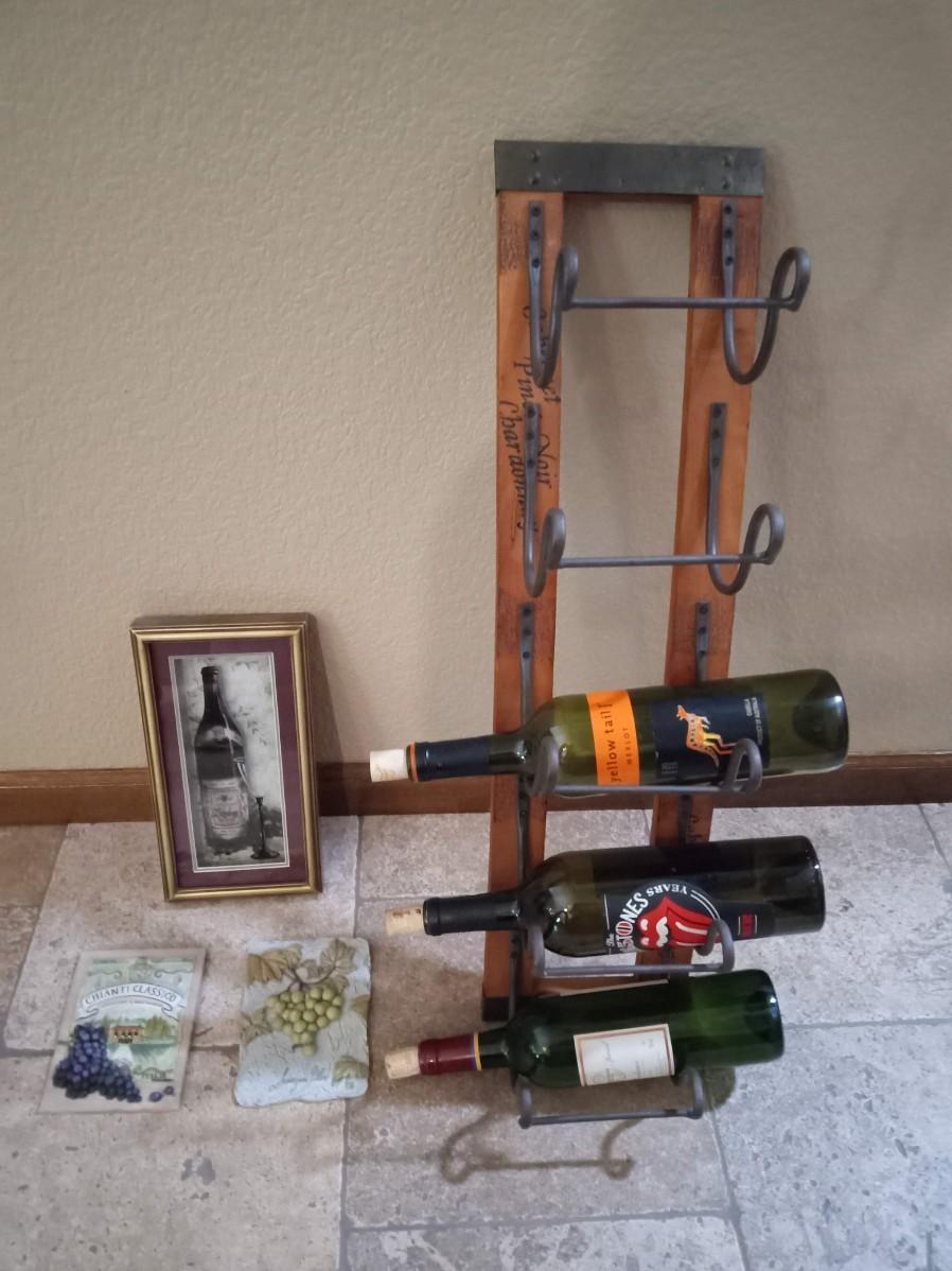 LOT 201  WALL HUNG WINE HOLDER AND 3 WALL WINE DECOR