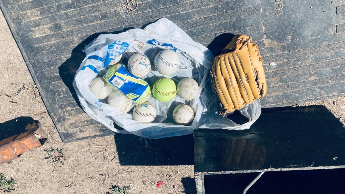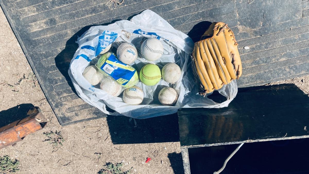 FRANKLIN FIELD MASTER MITT AND SOFTBALLS
