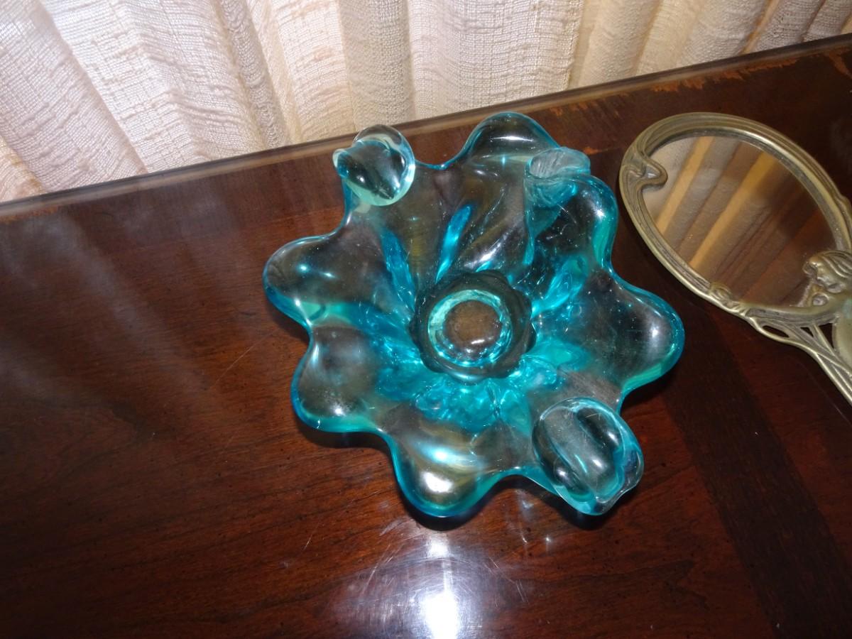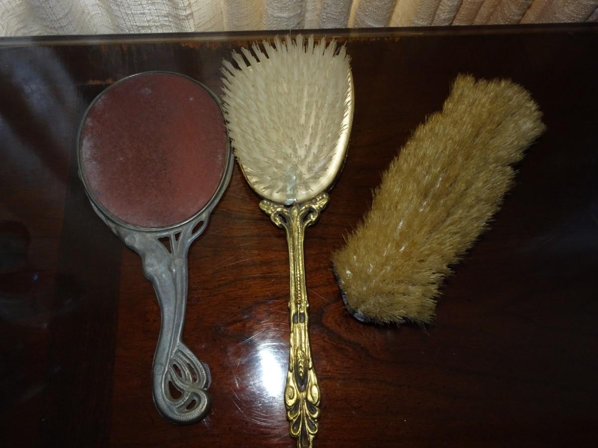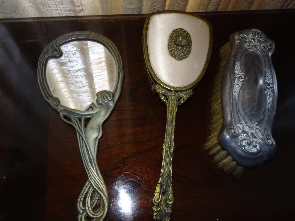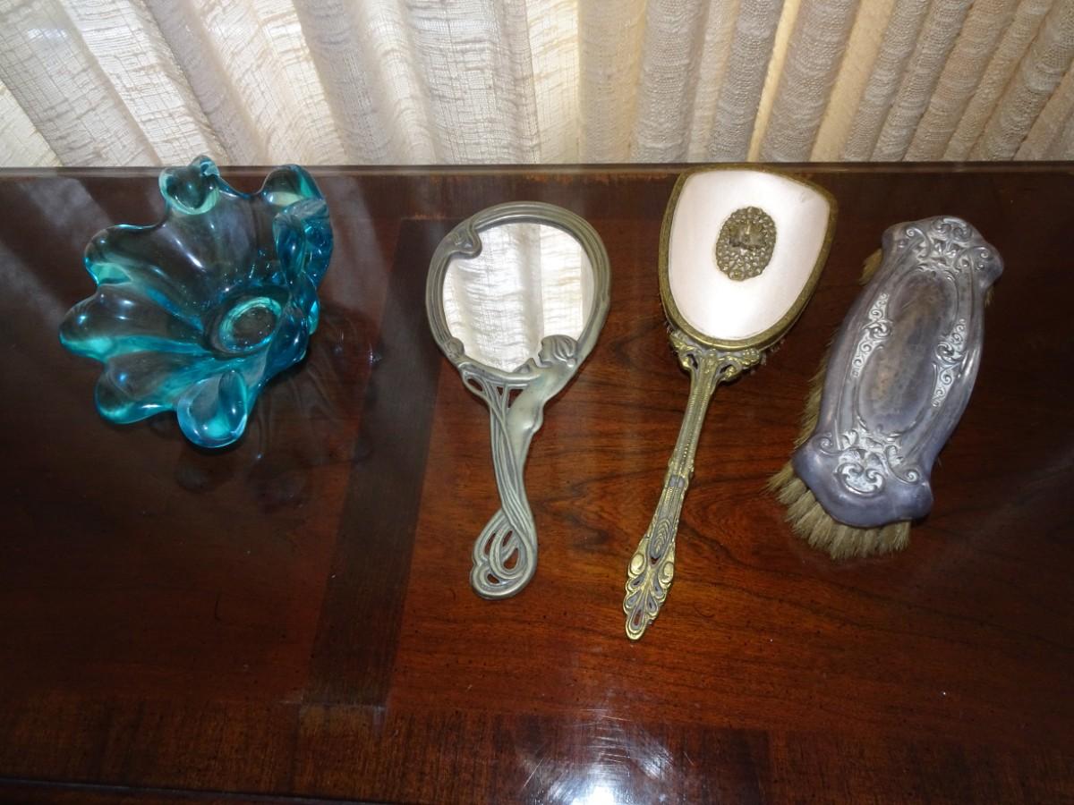 LOT 201. ART GLASS, TWO MIRRORS AND BRUSH