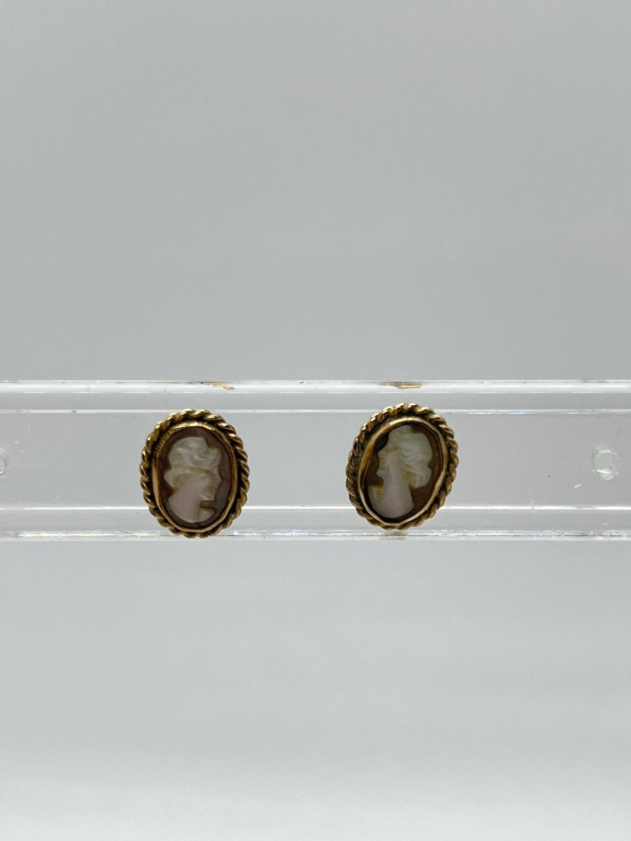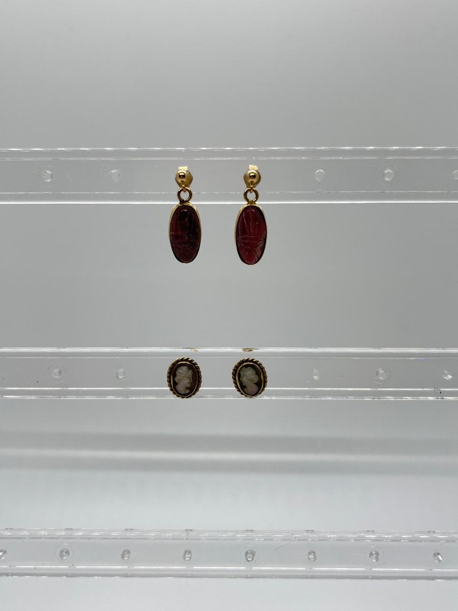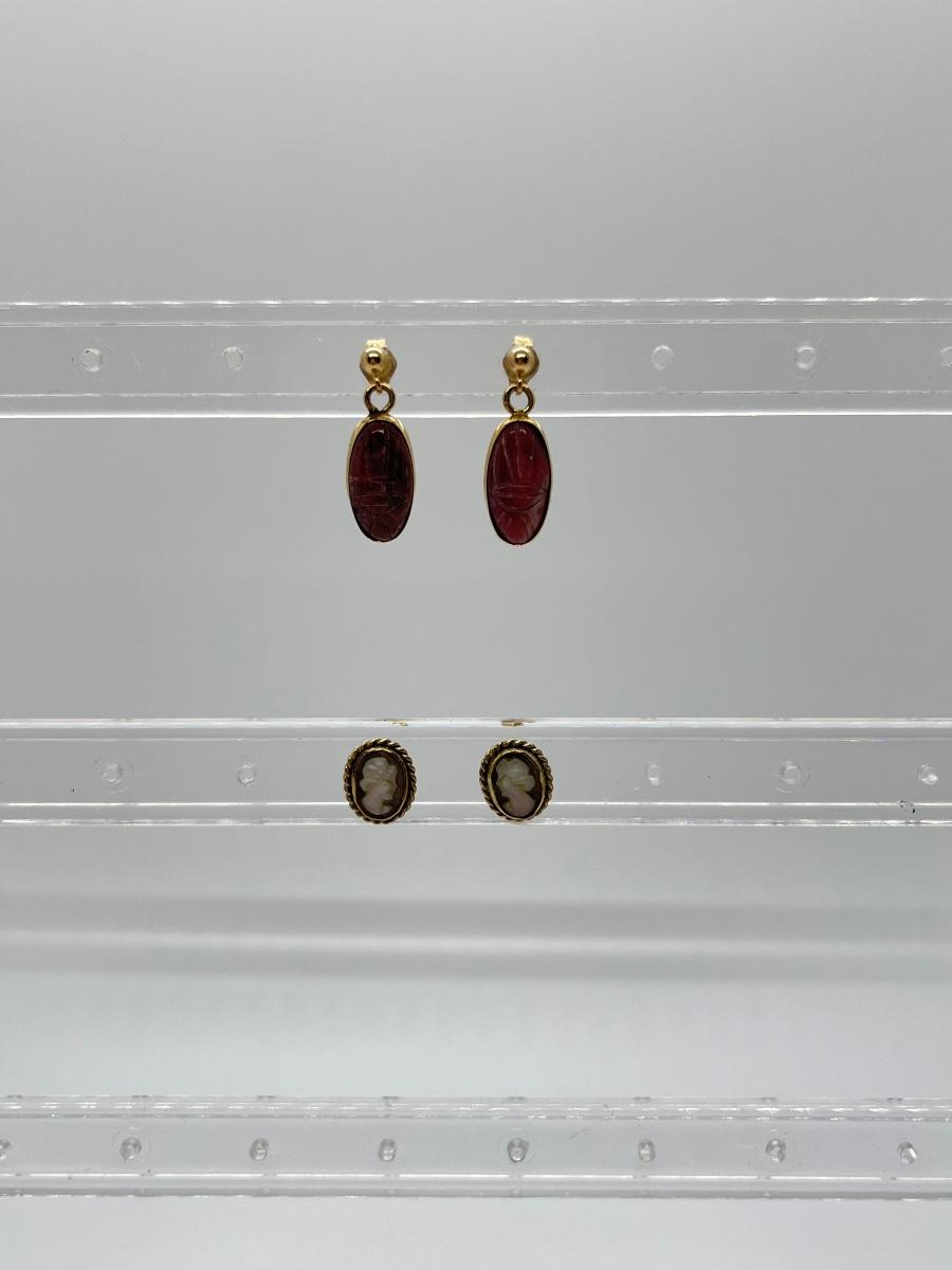 LOT 201: 14K Scarab Dangle Earrings + Cameo Earrings