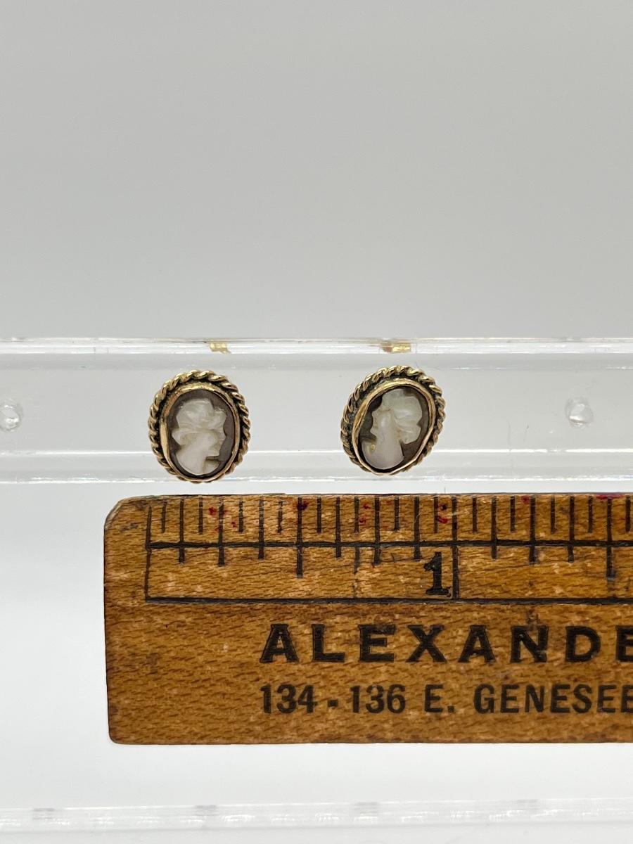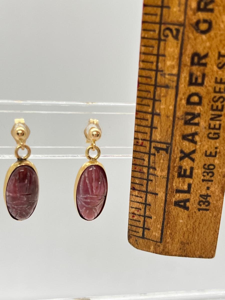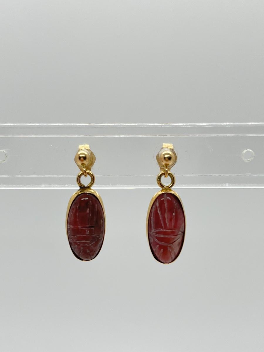 LOT 201: 14K Scarab Dangle Earrings + Cameo Earrings
