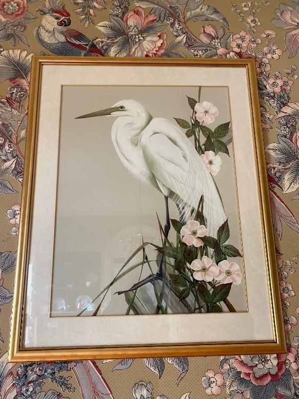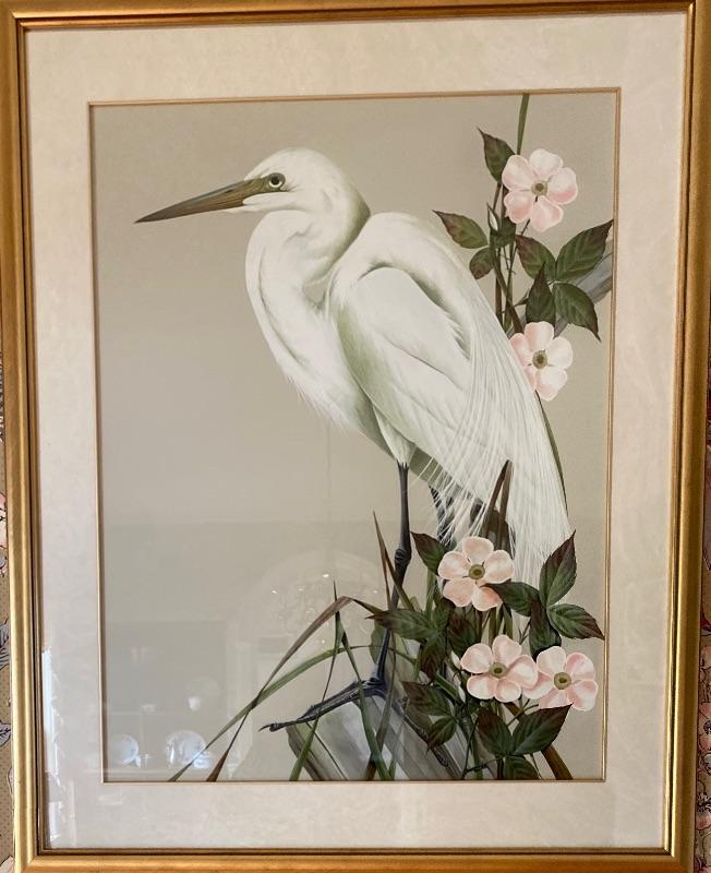 Art La May White Egret Framed lithograph 43" tall x 34.5" wide