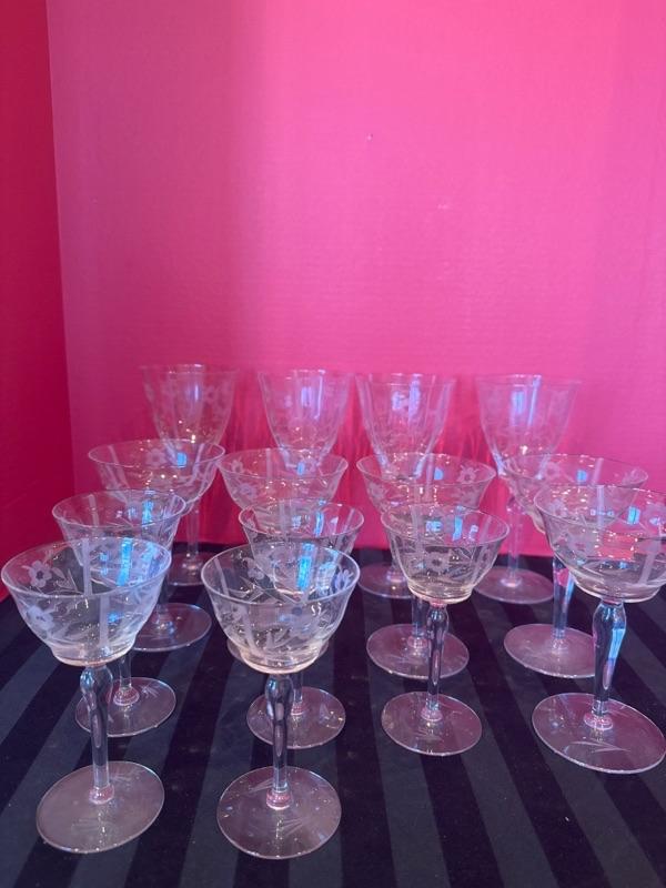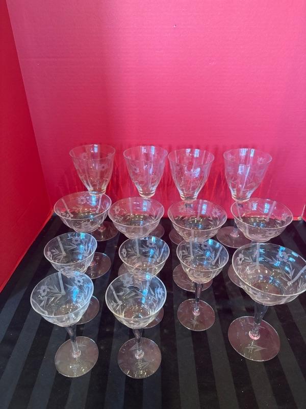 Vintage etched crystal barware 14pc