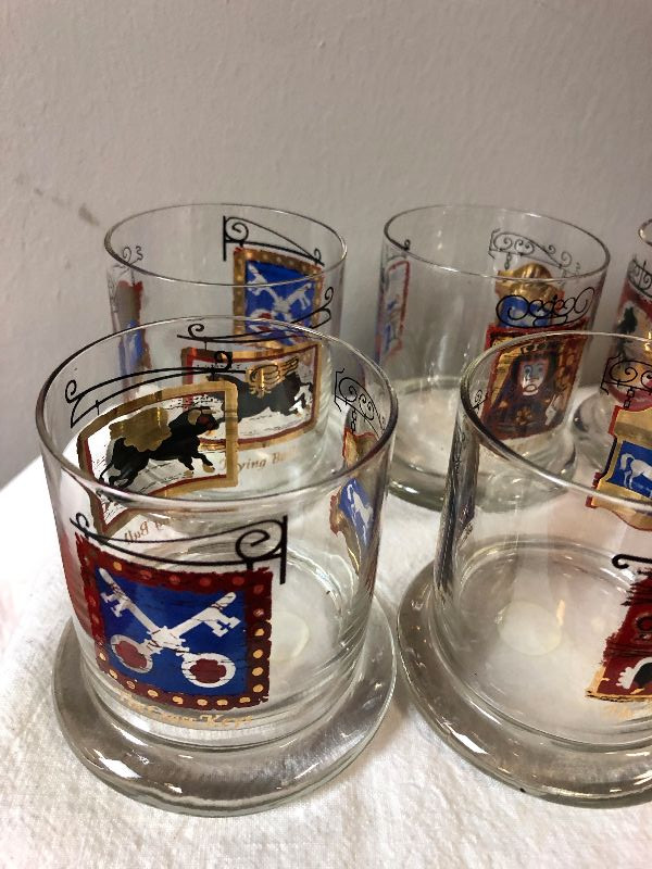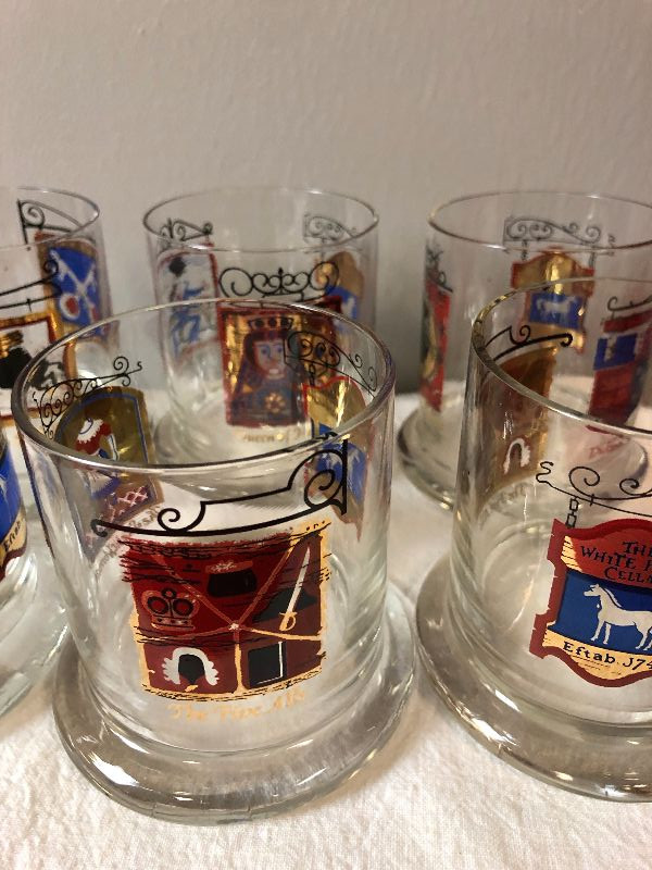 Lot 201 Lot of 6 drinking of glasses Depicting English pub signs