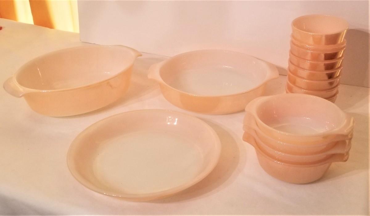 Lot #201 Lot of Vintage Peach Lustre Bakeware