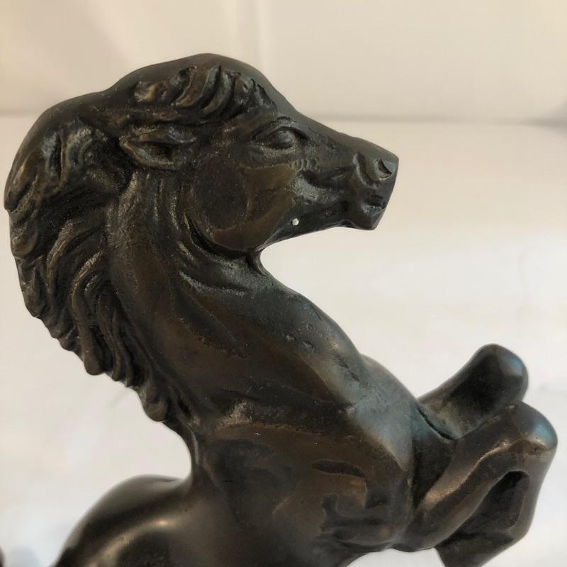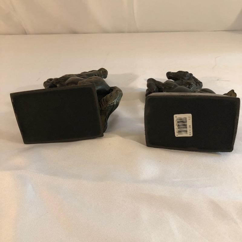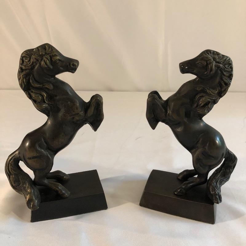This lot includes two metal horse bookends. One of the horses is partially loose from the base so it wiggles around.