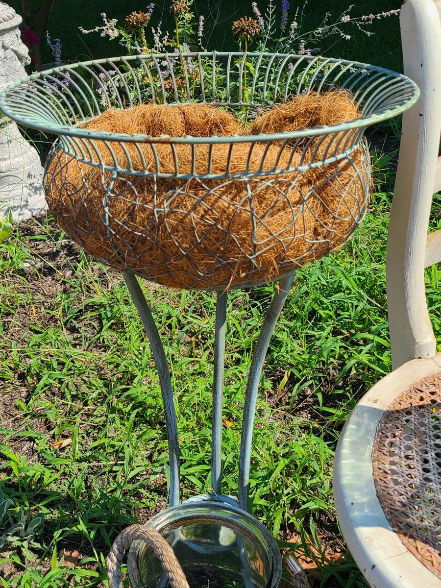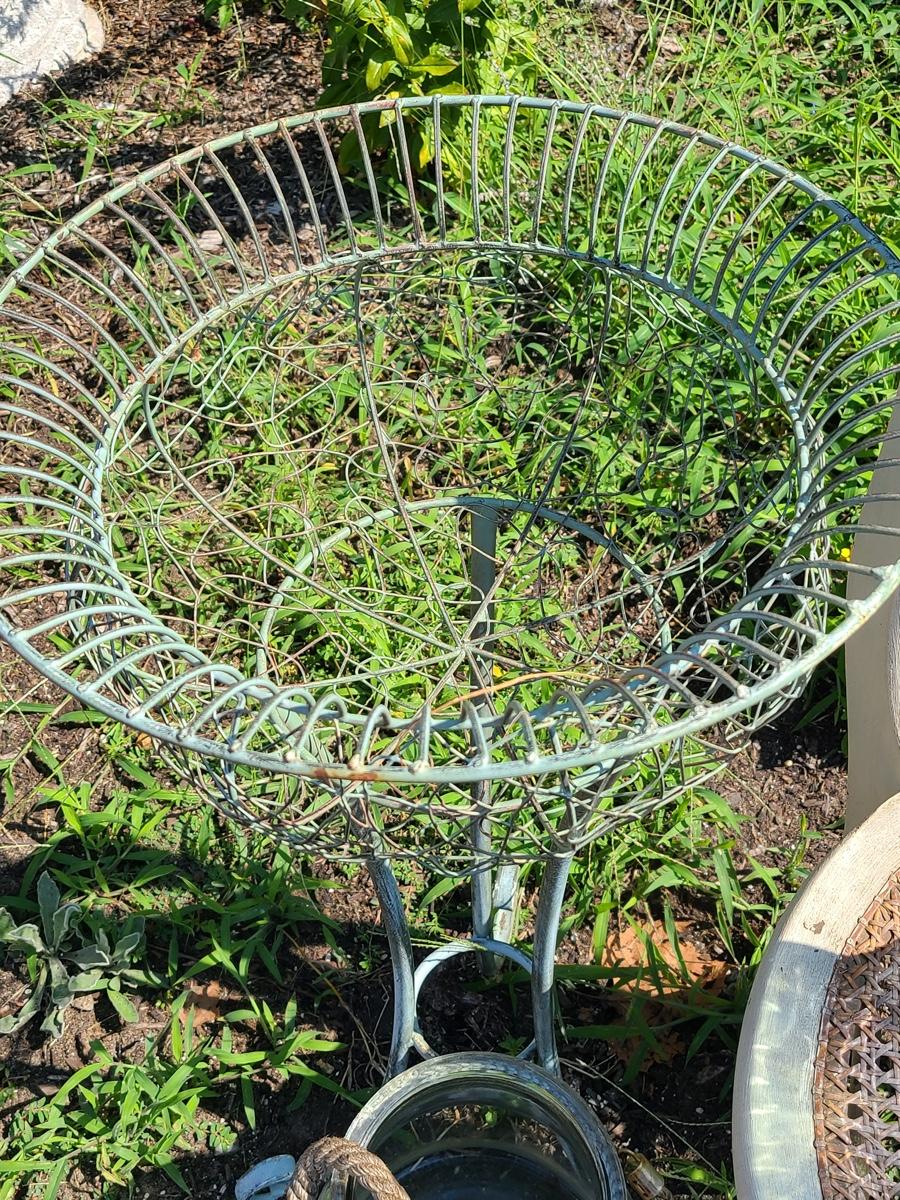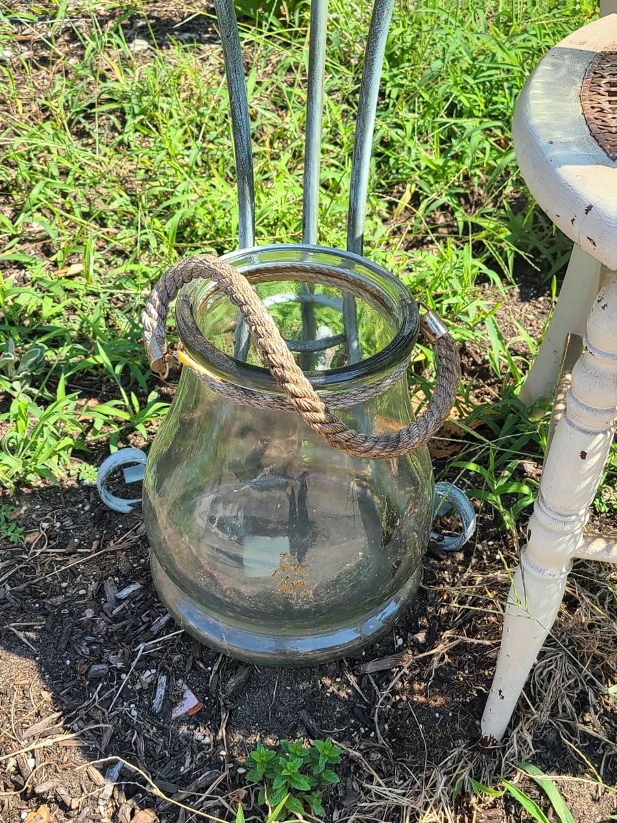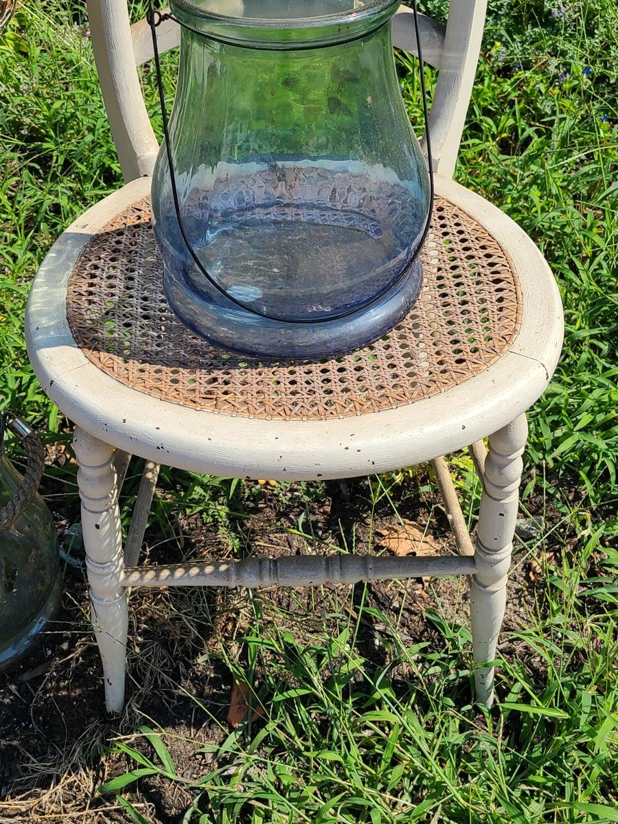 Lot 201: Metal Plant Stand, Vintage Chair and Two Large Glass Candle/Succulents Jars