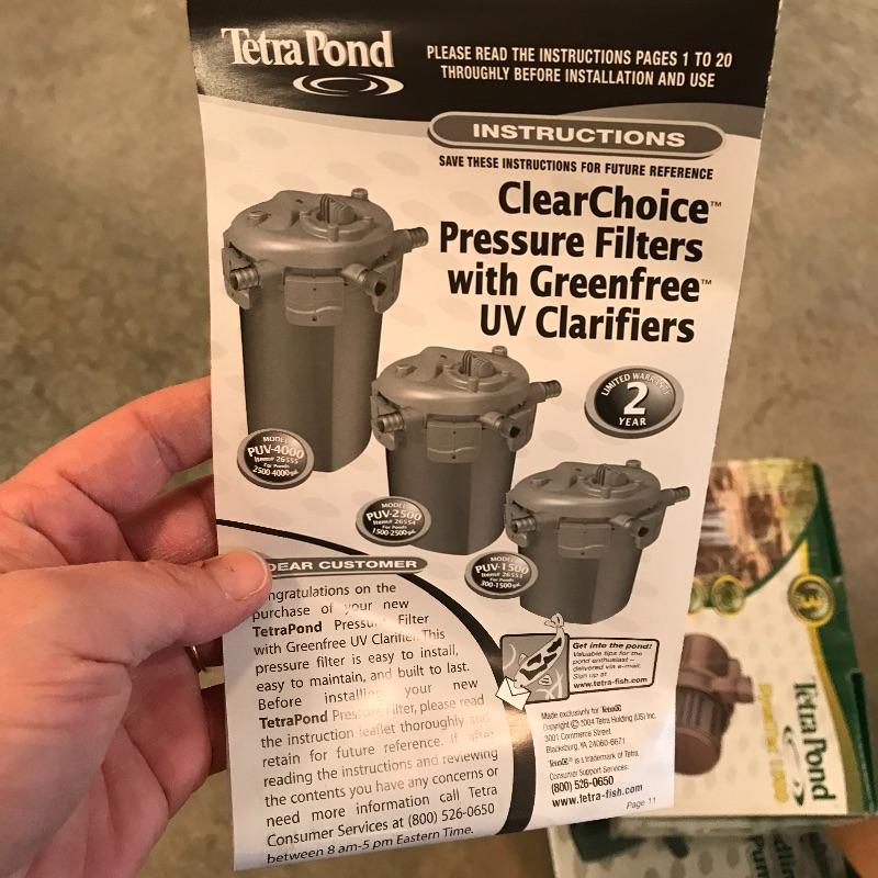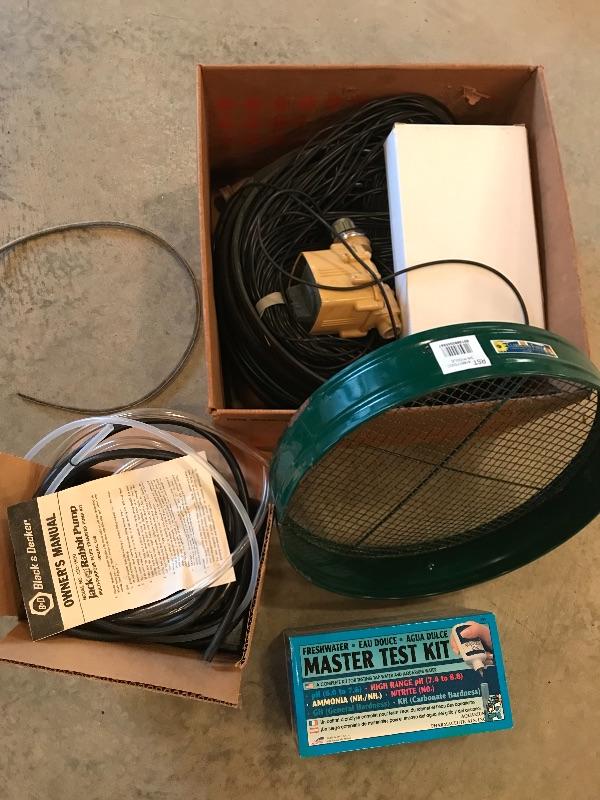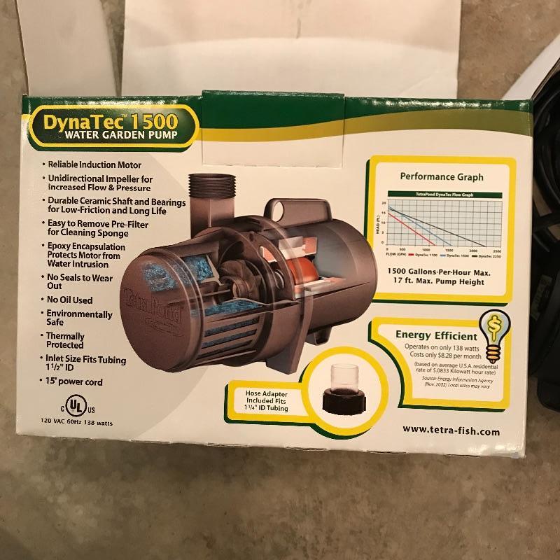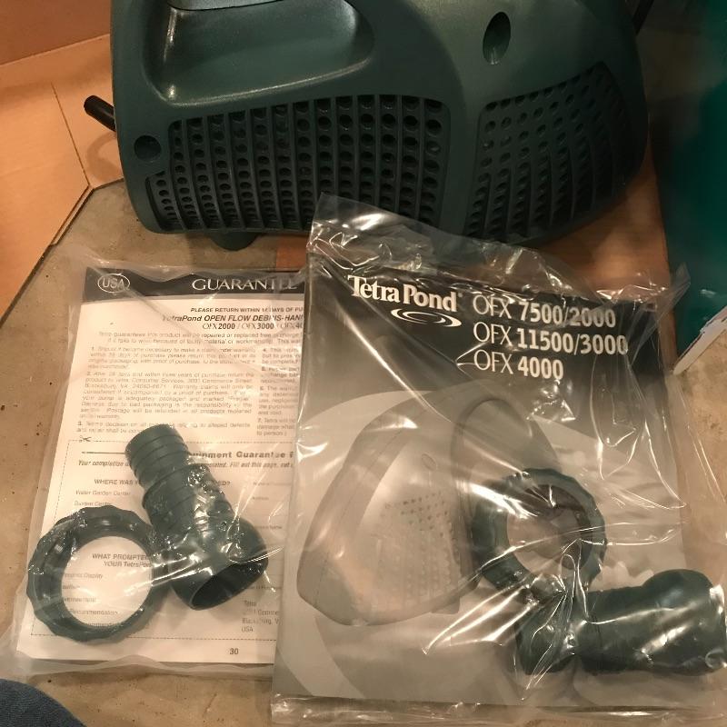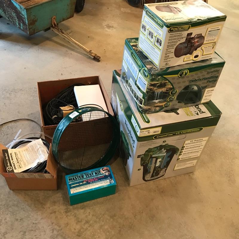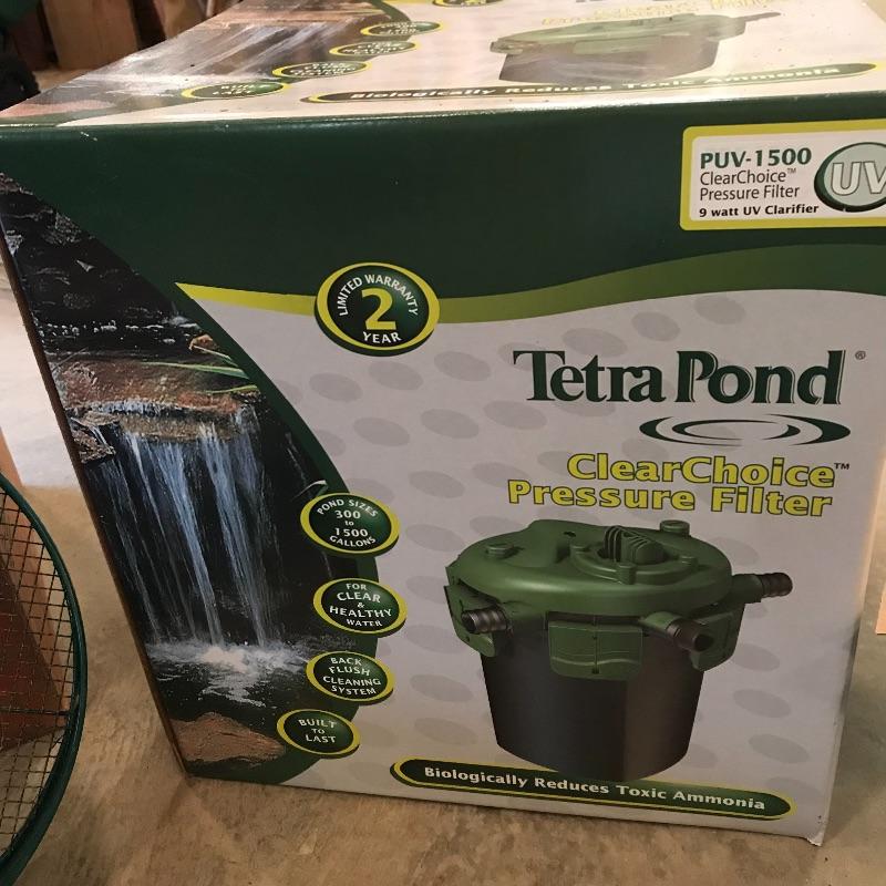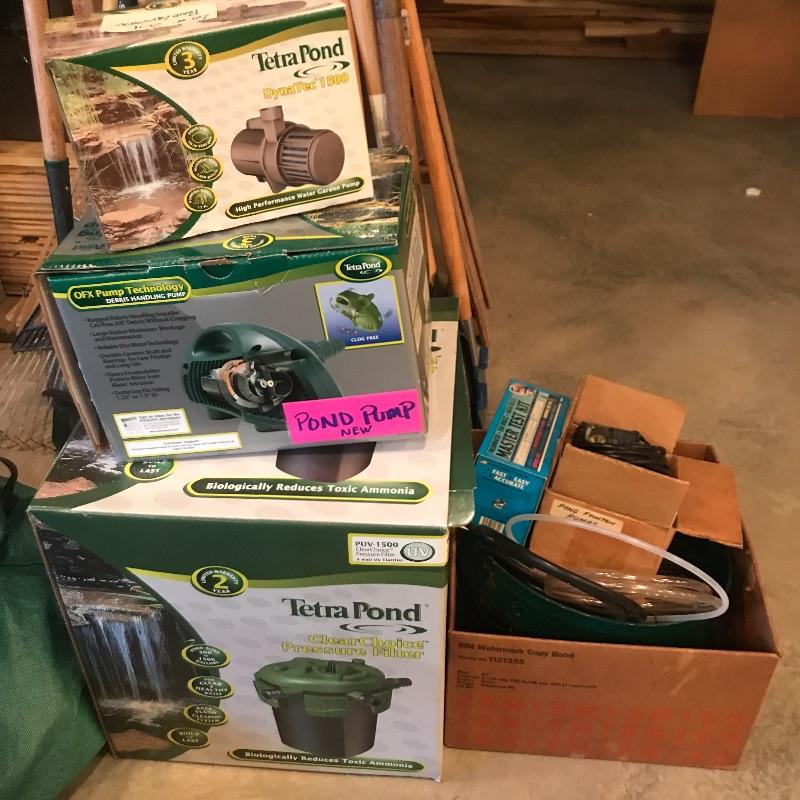 New and used pond equipment for the water feature you’ve been waiting for! New in box Tetra Pond Clear choice pressure filter for 300-1500 gallons. A Tetra Pond Debris Handling Pump with OFX technology and a DynaTec 1500 Water Garden Pump. Accessories and test kit included in lot. See photos. No shipping.