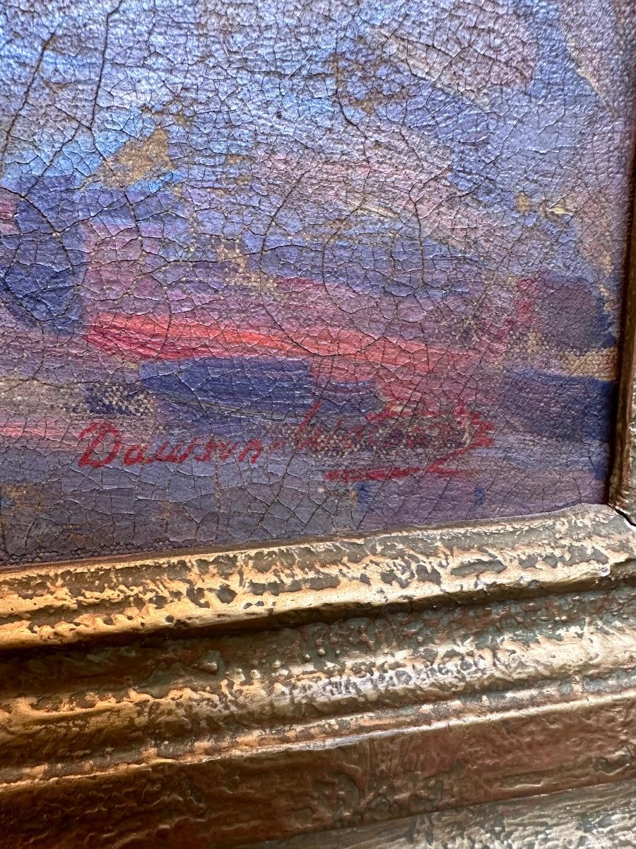 The artist lived in Giverny, France near the home of Impressionist Claude Monet for five years, 1884 to 1890, and in 1888 married an American women, Mary Hoyt Sellar, who was traveling in Europe.  They came to the United States in 1893 at the encouragement of artist James Carroll Beckwith, and Dawson painted in New England until 1897.   He was hired as director of the Hartford Art Society in Hartford, Connecticut.