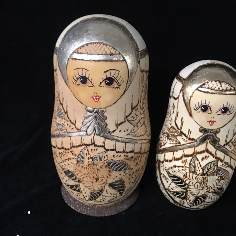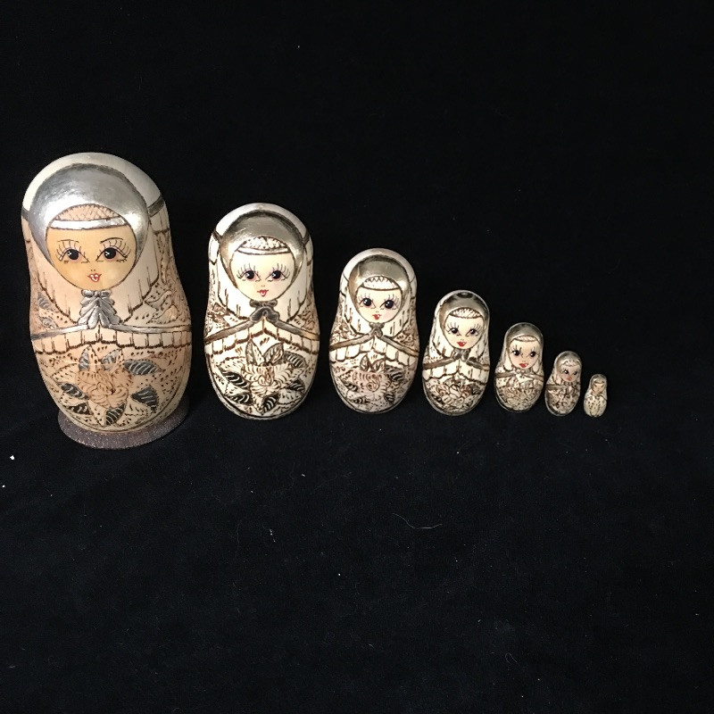 Lovely pair of nesting dolls. One set has seven dolls one has five dolls that are animals. Keep your little one busy with these amazing dolls.
