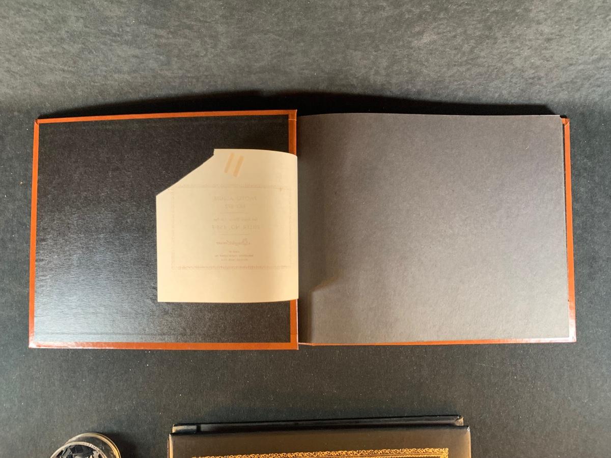 Black 10" X 14". Brown 11" X 14" includes paper corners