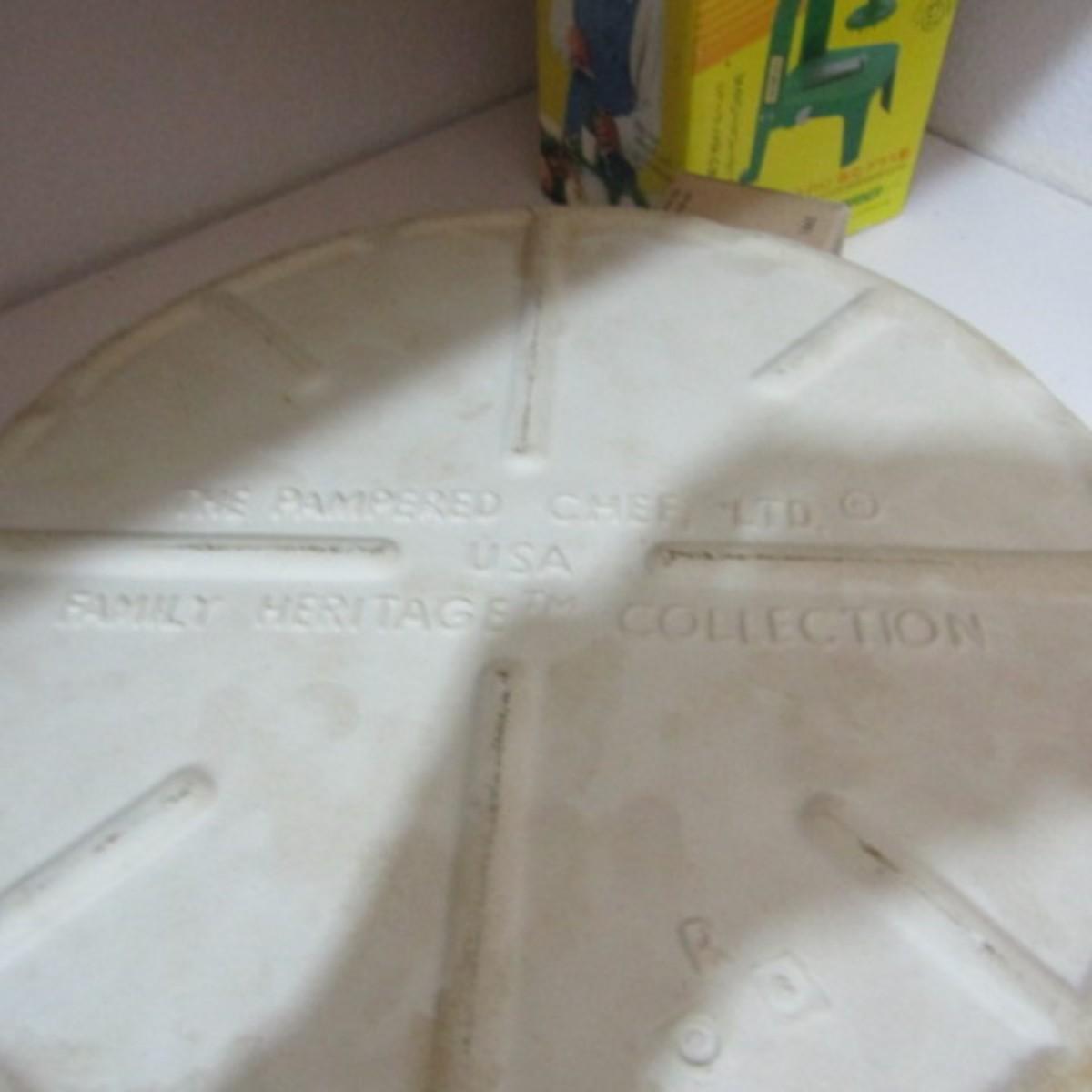PAMPERED CHEF PIZZA STONE AND BASTER/CLEANING BRUSH