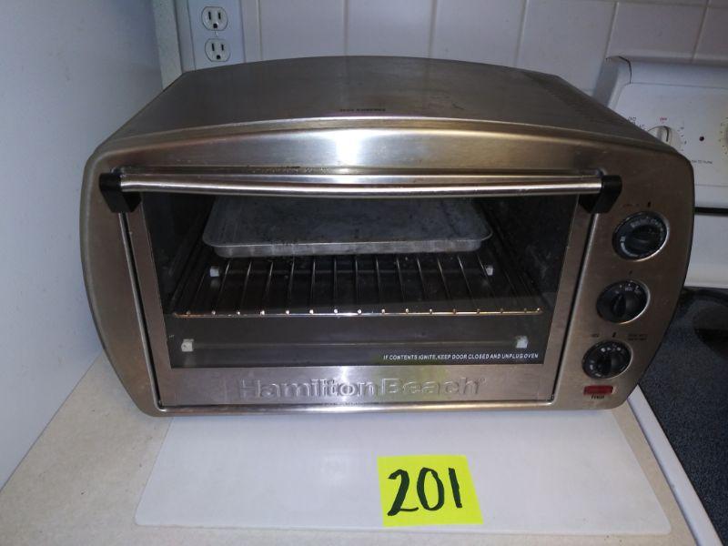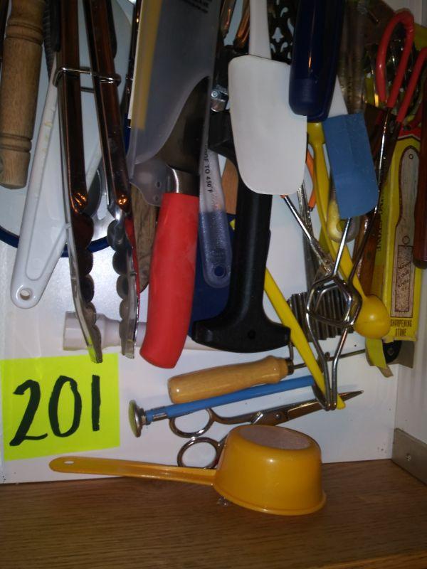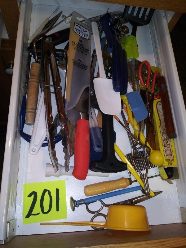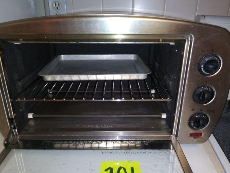 TOASTER OVEN, X-LARGE ELECTRIC FRYING PAN AND A DRAWER FULL OF KITCHEN UTENSILS