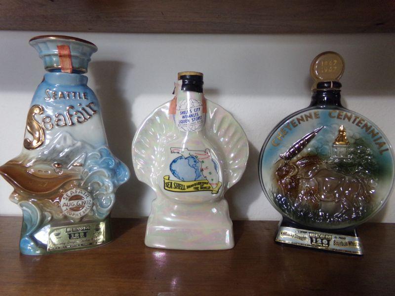 LOT 193  VINTAGE 1972 JIM BEAM TROPHY RACE DECANTER, 1967 FLORIDA J.M. DECANTER, 1967 CHEYENNE J.M CENTENNIAL DECANTER