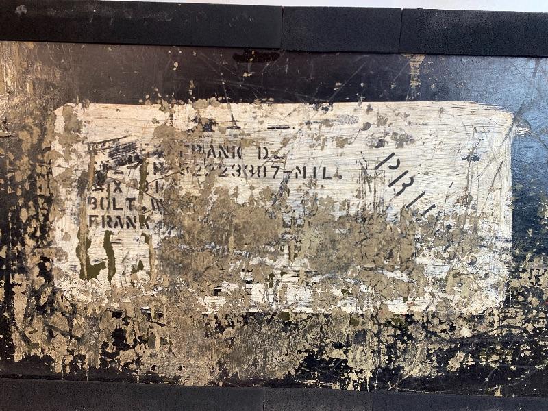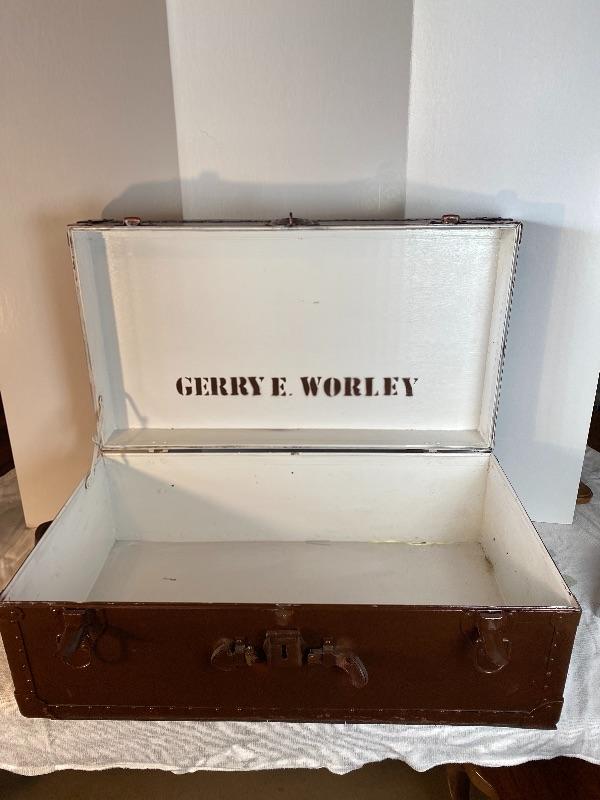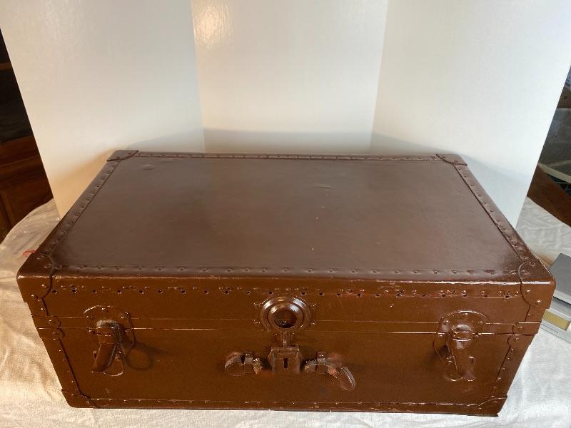 Lot# 202 Vintage Trunk Painted Brown White Military Marked on bottom