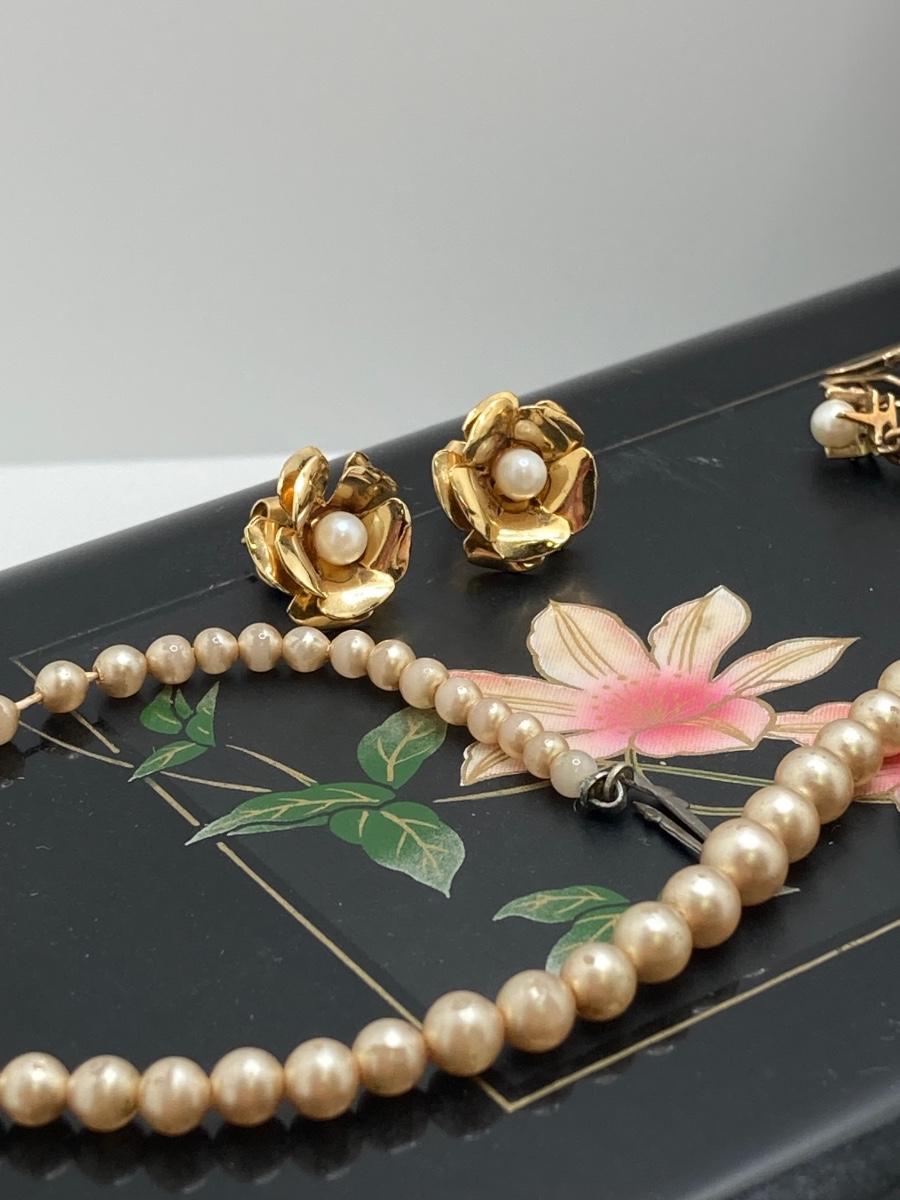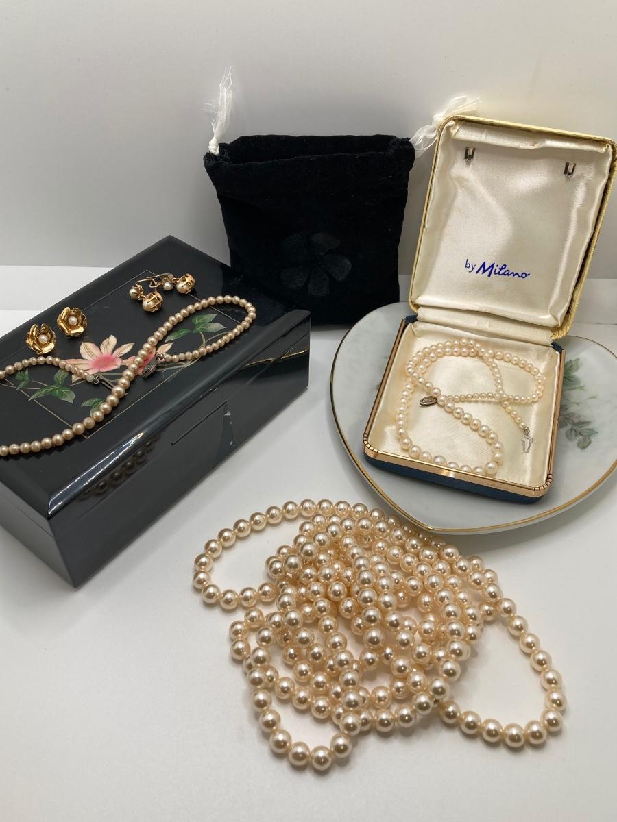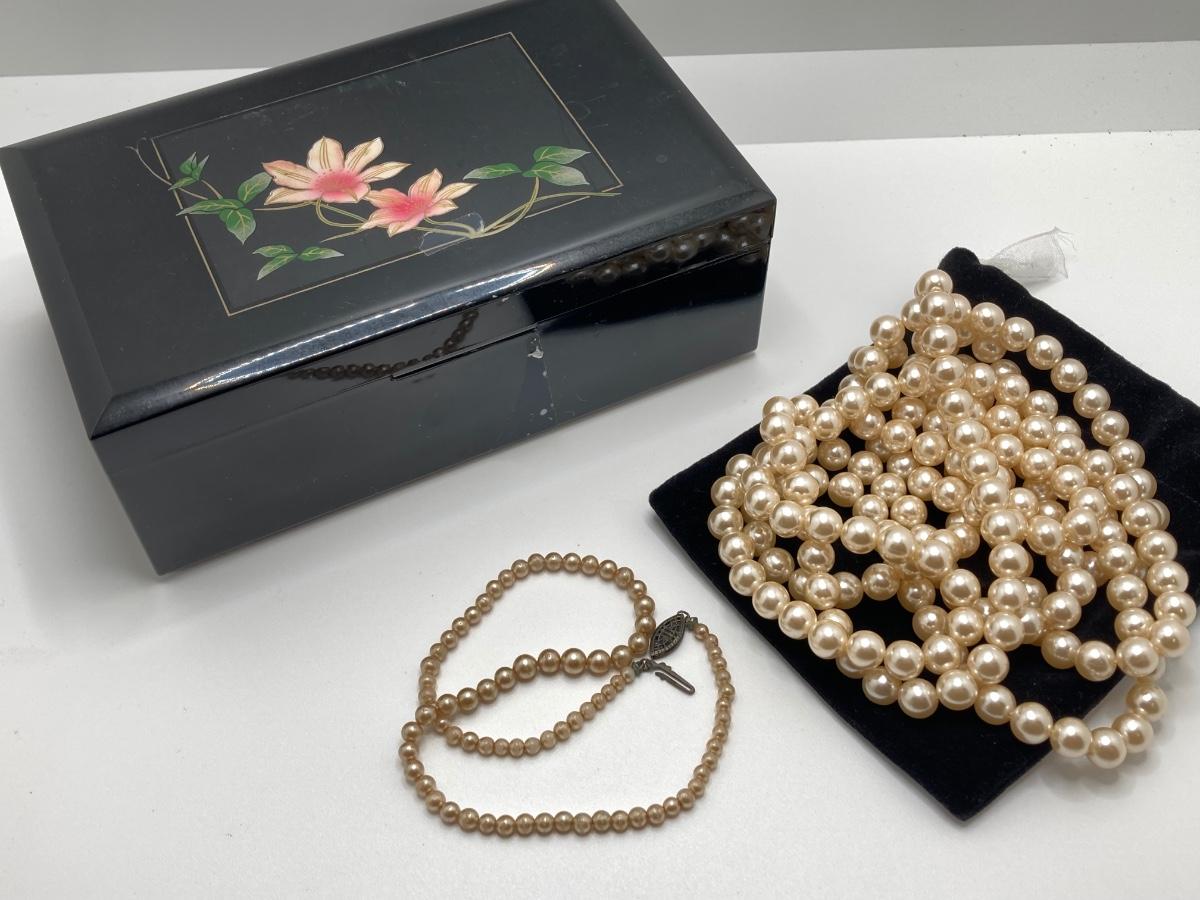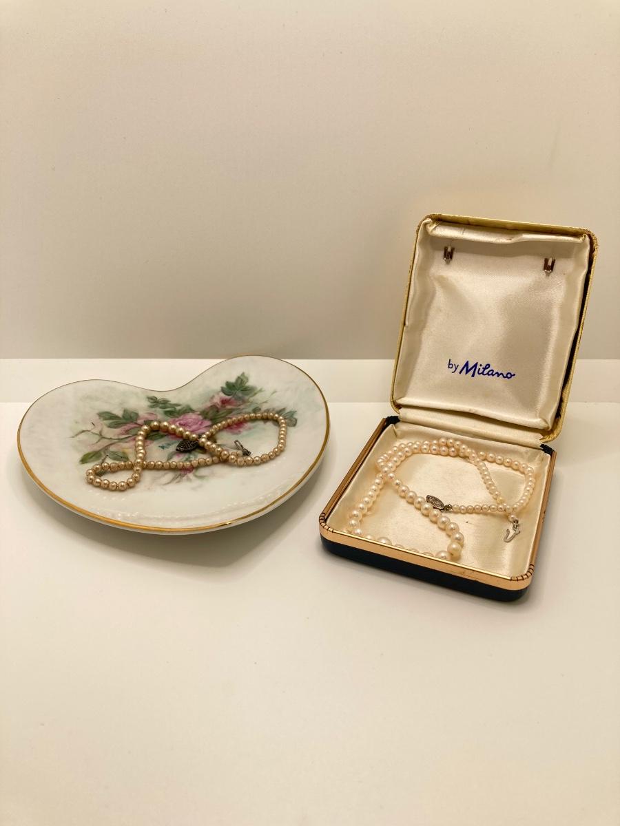 LOT 202: Vintage Pearl Jewelry Collection, Jewelry Box and Heart Shaped Floral Trinket Dish