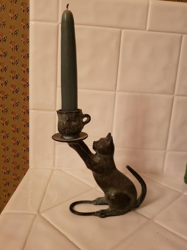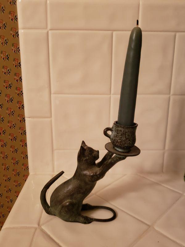 Small Bronze Cat Candleholder ... 5.5" (without candle)