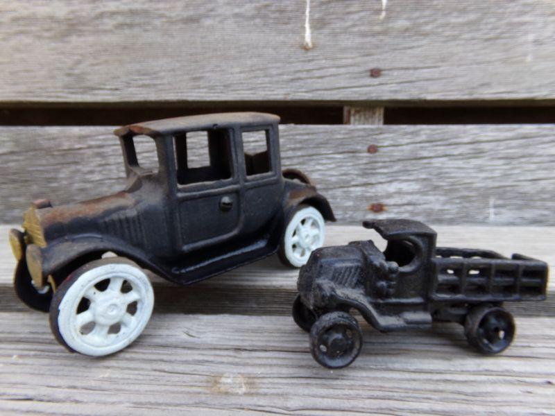 TOYS HAVE BEEN STORED IN A SHED FOR A LONG TIME. SOME HAVE LOSS OF FINISH/PAINT OR ARE RUSTY IN PLACES