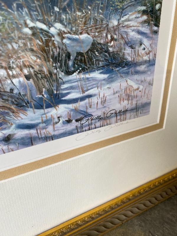 Signed and gold framed Phillip Philbeck print. Signed in pencil on print as well as on TOP of glass! 39” x 30”. Number 431 of 950. Shipping available but please contact UPS for quote prior to bidding. 828-252-6930