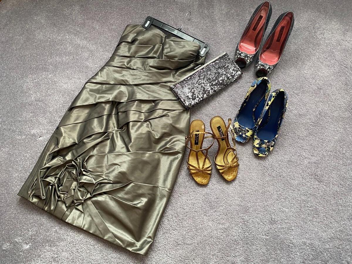 Lot 202: Ladies size 8 Cocktail and Size 8 Dressy Shoes, and Sequins Clutch