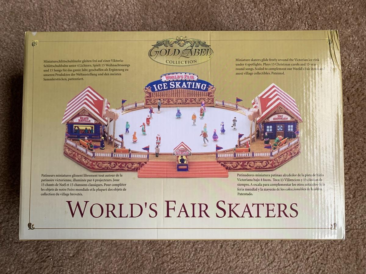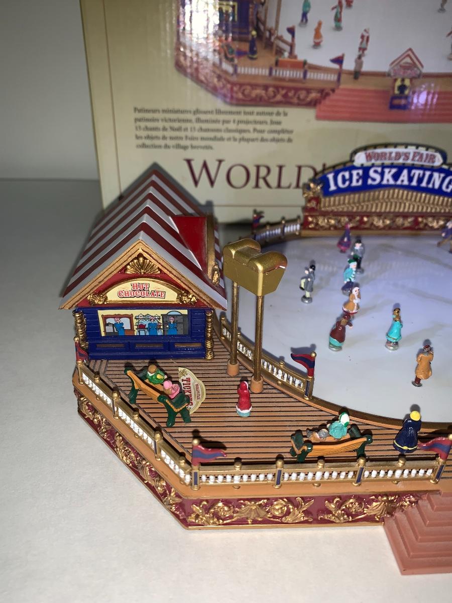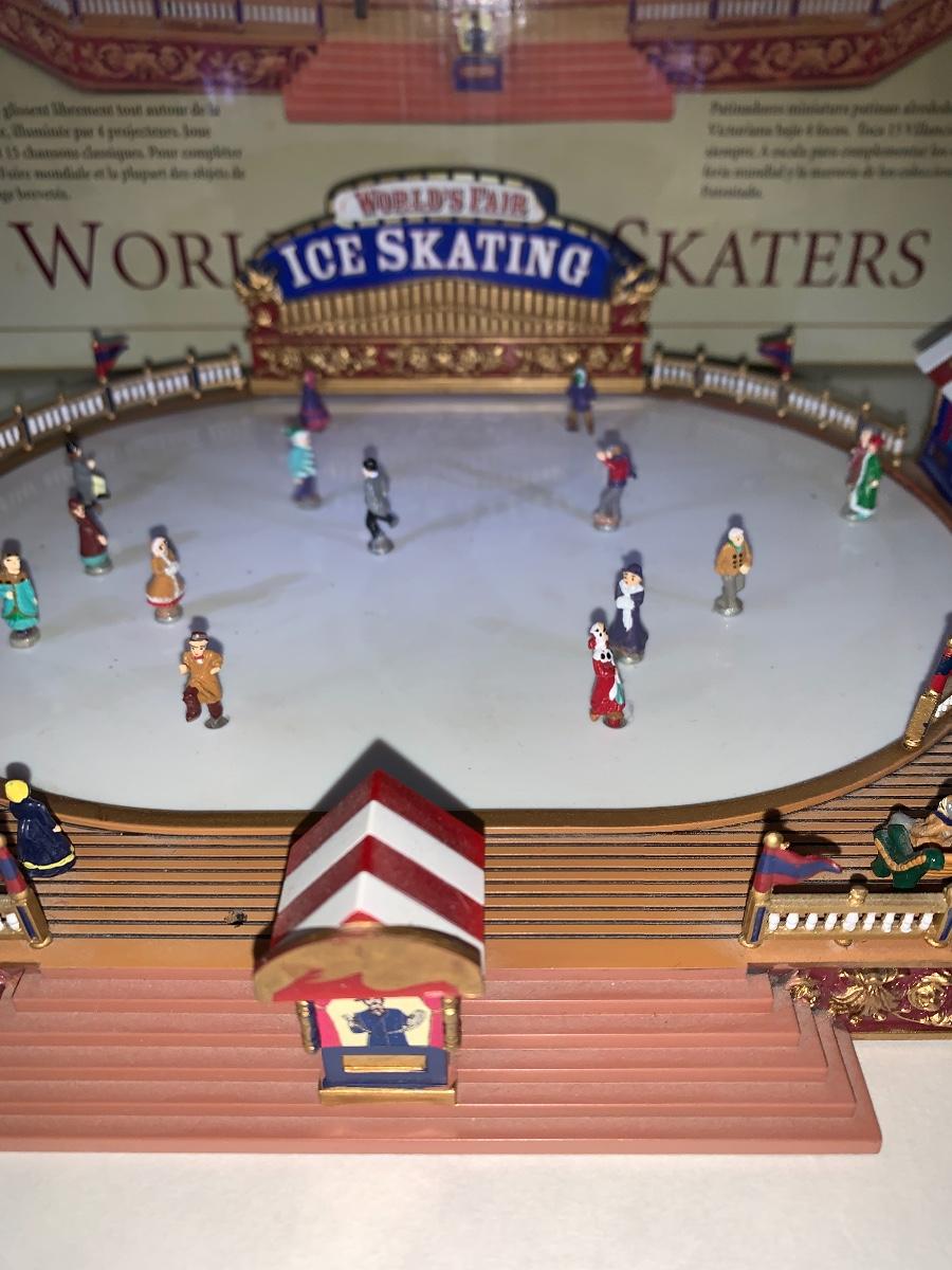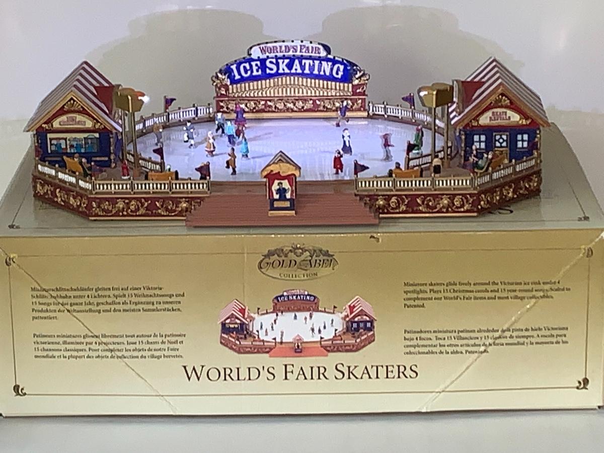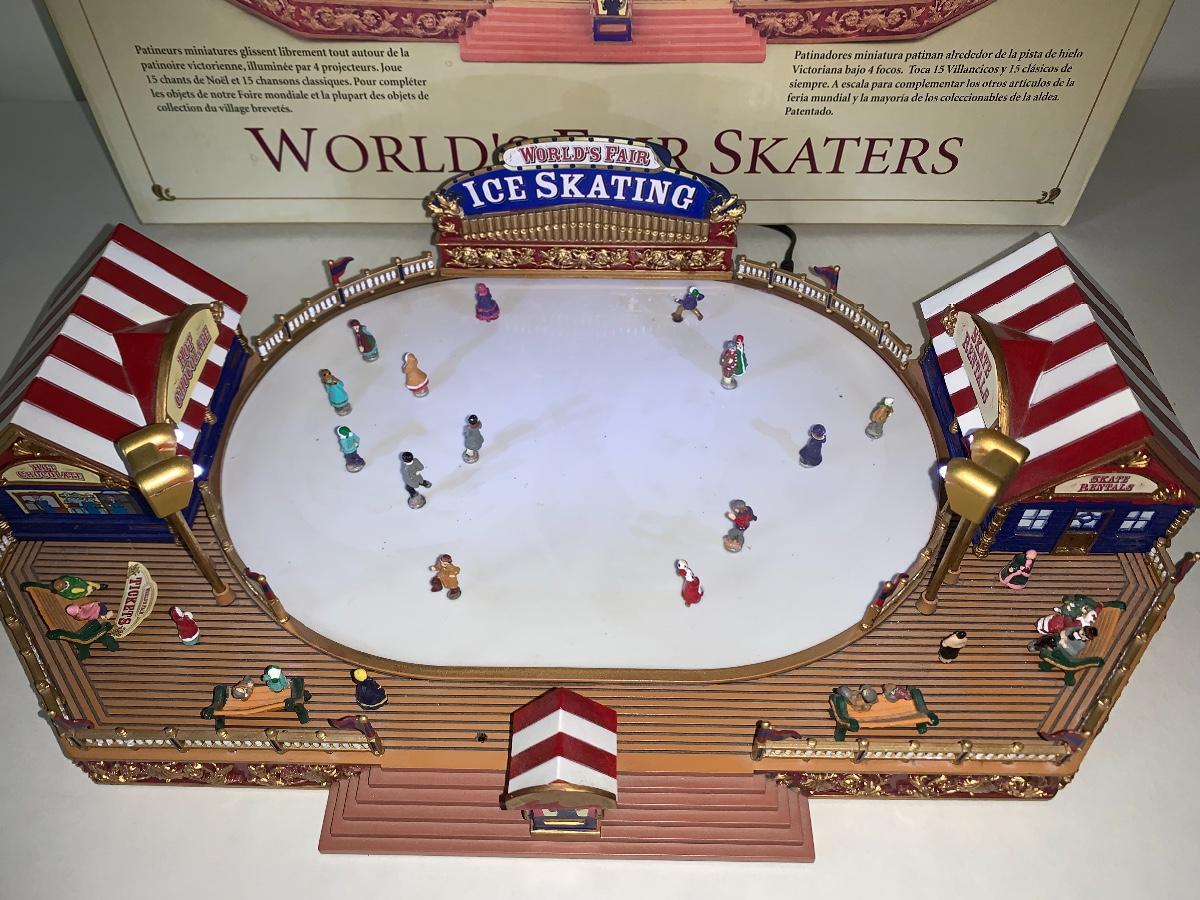 THIS IS A WORKING. GOLD LABEL COLLECTION WORLD'S FAIR SKATERS. MINIATURE SKATERS GLIDE FREELY AROUND THE VICTORIAN ICE RINK UNDER A SPOTLIGHT. PLAYS 15 CHRISTMAS CAROLS AND 15 YEAR-ROUND SONGS. SCALED TO COMPLEMENT THE WORLD'S FAIR ITEMS AND MOST VILLAGE COLLECTIBLES. INCLUDES UL LISTED ADAPTER AND INSTRUCTION BOOKLET.. BOX HAS SOME WEAR FROM STORAGE. Items not paid for 24 hours after auction pick-ups, will be charged to the credit card on file. Bidding is a binding contract, and failure to pay for winning lots whether 1 or 20 items will result in being blocked from future bidding. Thank you for your understanding as we try to insure our clients and buyers do not lose out due to non-paying bidders.