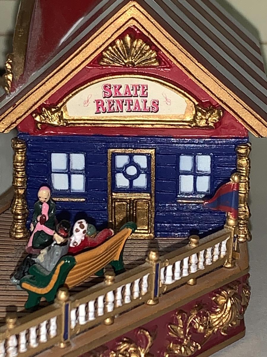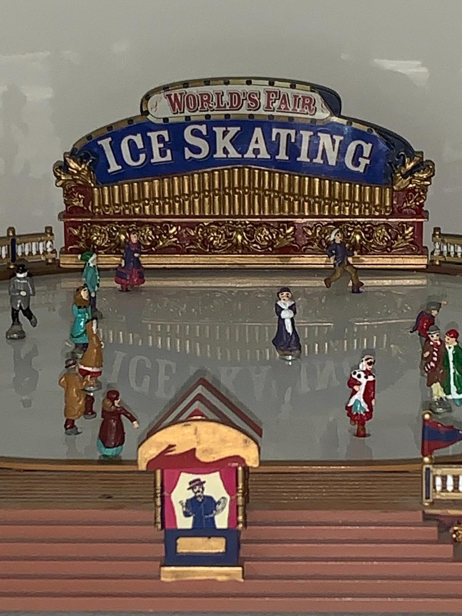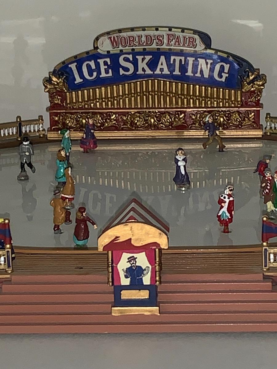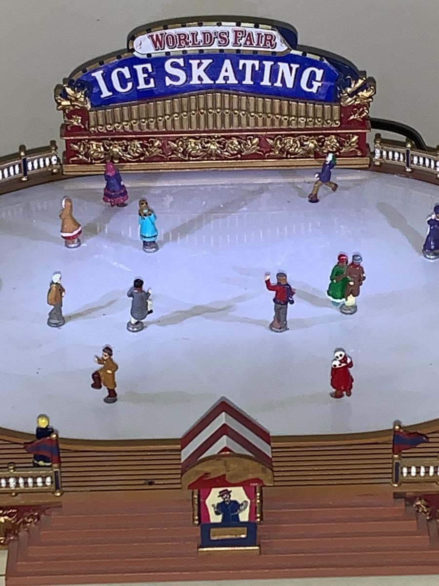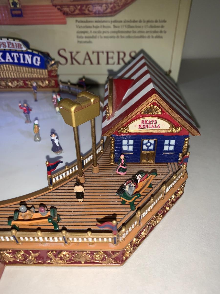 THIS IS A WORKING. GOLD LABEL COLLECTION WORLD'S FAIR SKATERS. MINIATURE SKATERS GLIDE FREELY AROUND THE VICTORIAN ICE RINK UNDER A SPOTLIGHT. PLAYS 15 CHRISTMAS CAROLS AND 15 YEAR-ROUND SONGS. SCALED TO COMPLEMENT THE WORLD'S FAIR ITEMS AND MOST VILLAGE COLLECTIBLES. INCLUDES UL LISTED ADAPTER AND INSTRUCTION BOOKLET.. BOX HAS SOME WEAR FROM STORAGE. Items not paid for 24 hours after auction pick-ups, will be charged to the credit card on file. Bidding is a binding contract, and failure to pay for winning lots whether 1 or 20 items will result in being blocked from future bidding. Thank you for your understanding as we try to insure our clients and buyers do not lose out due to non-paying bidders.