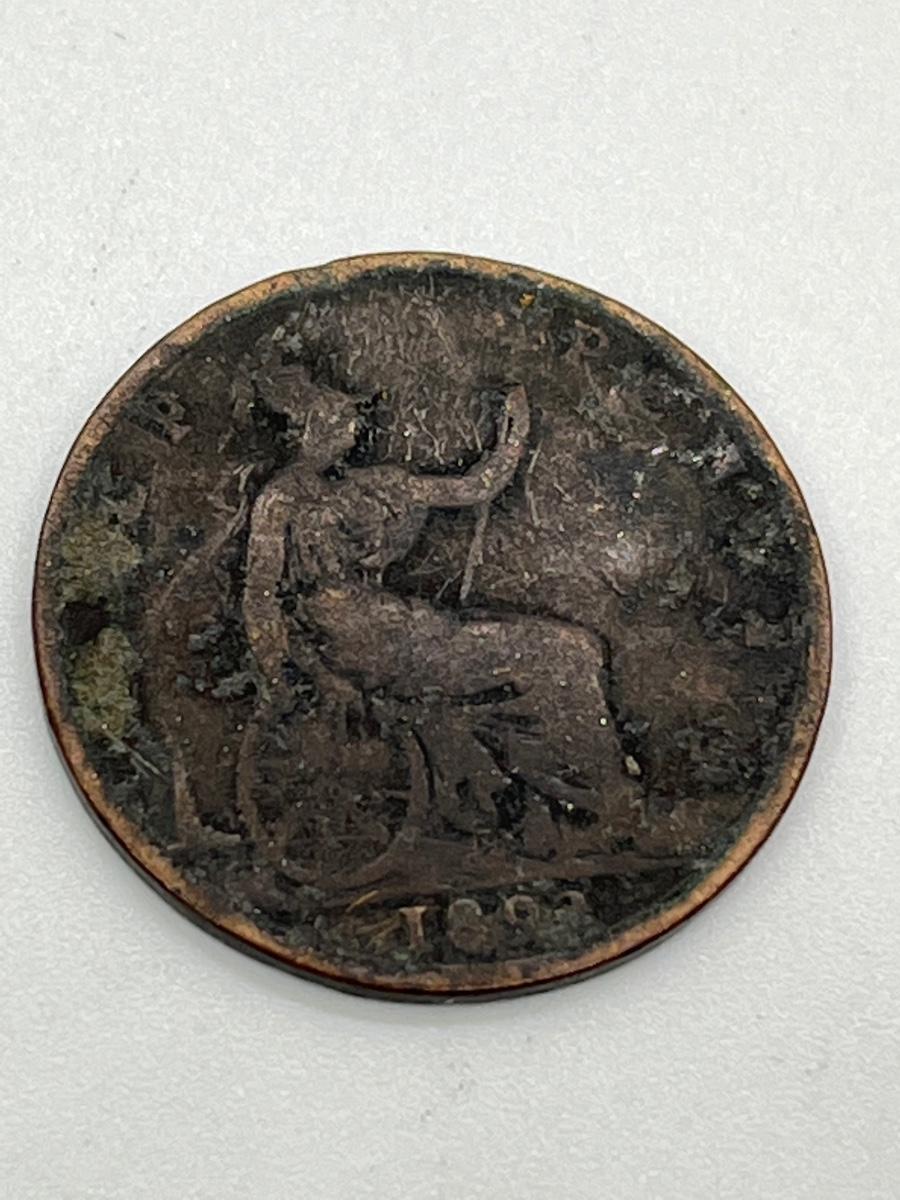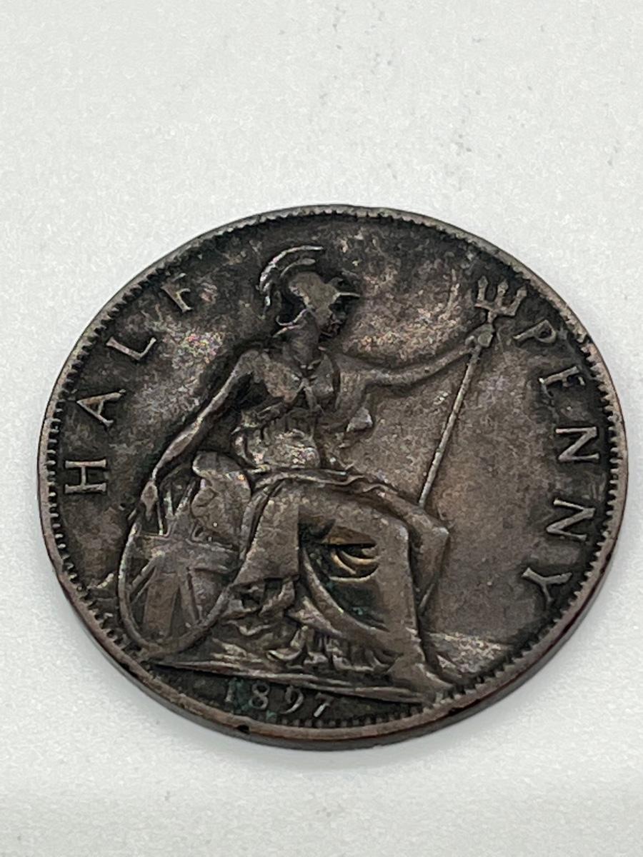Antique British Coins - 1866 Penny and Two Half Pennies - one from 1897, the other's date is difficult to tell - possibly 1893.