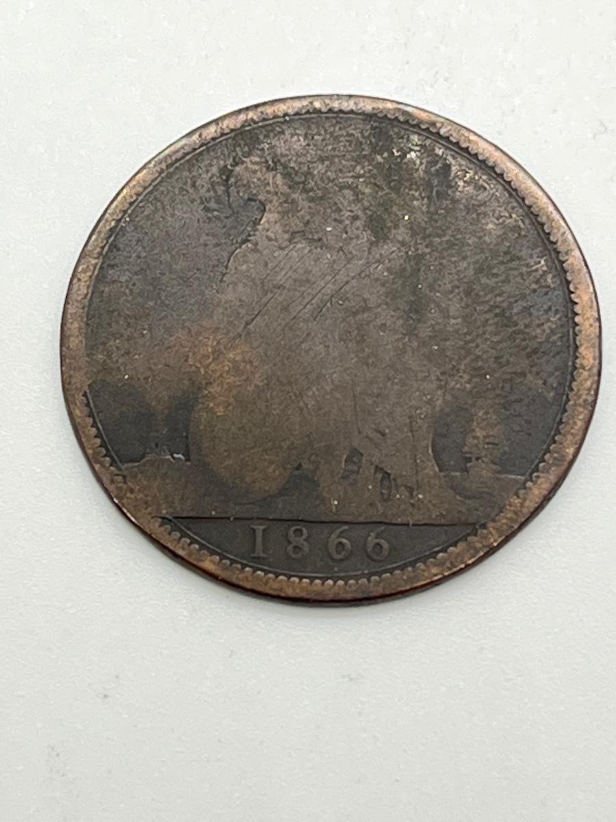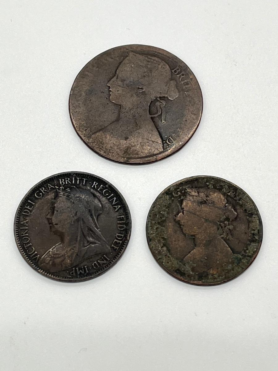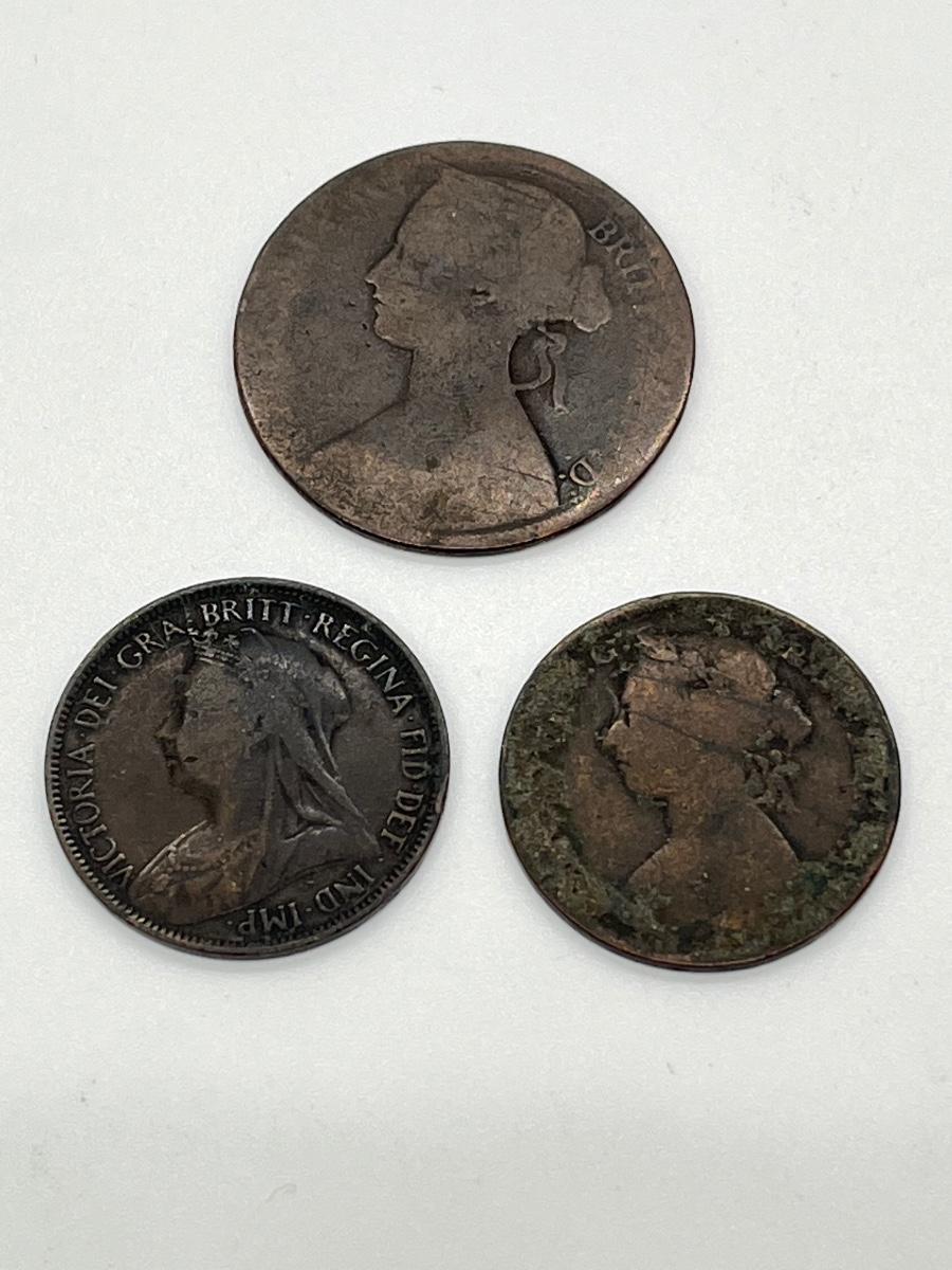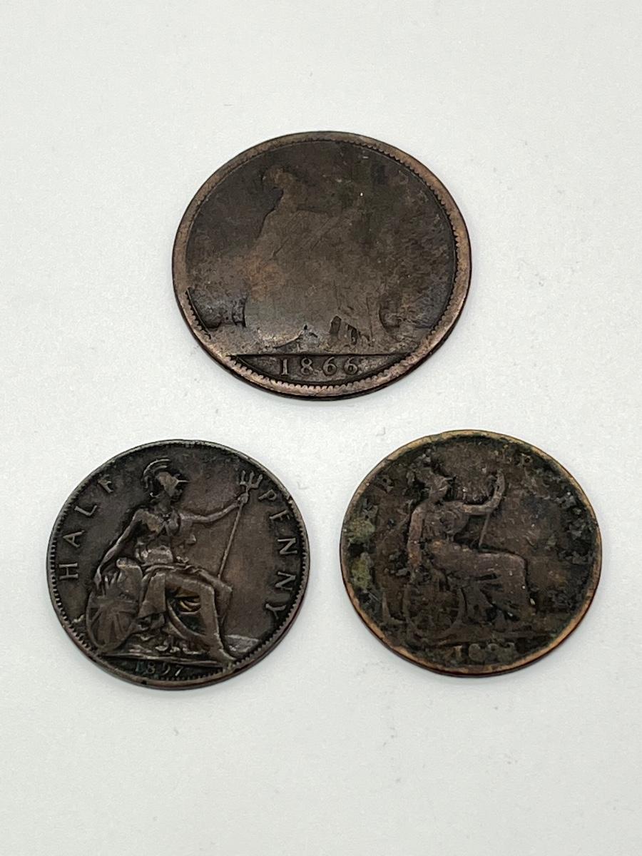 Lot 202: Antique British Coins - 1866 Penny and Two Half Pennies