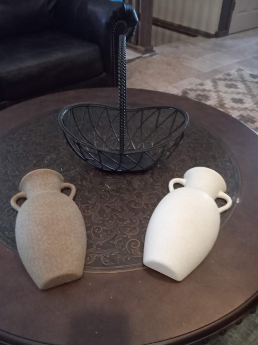 LOT 202 TWO WALL POCKETS AND A METAL BASKET